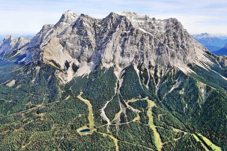 The Zugspitze belongs to the Wetterstein range of the Northern Limestone Alps. The Austria–Germany border goes right over the mountain. There used to be a border checkpoint at the summit but, since Germany and Austria are now both part of the Schengen zone, the border crossing is no longer staffed.