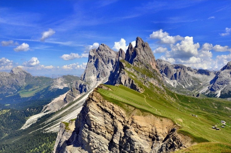The easiest way to reach the peak of the Seceda (2518 meters above sea level) is through the ski lift that starts from Ortisei and directly reaches the top with its panoramic point, or through the ski lift that starts from Santa Cristina Valgardena and reaches the Col Raiser (2107 meters above sea level). Whether you arrive with the Seceda cable car or the Col Raiser cable car, there are numerous shelters and restaurants that can be used as a foothold and refreshment.