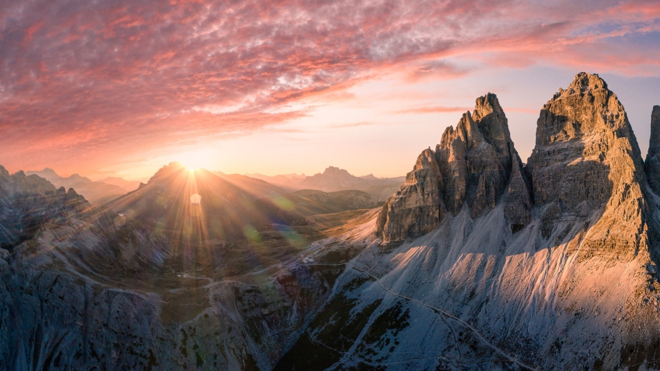 The Three Peaks of Lavaredo (Drei Zinnen in German ; Tré Zìmes in Ladin Cadore[[1]) are three peaks of the Dolomites site in the municipality of Auronzo di Cadore and bordering on that of the Dolomites of Sesto in the municipality of Dobbiaco; they are considered among the most famous mountains in the world of mountaineering, with the Cima Grande which represents one of the classic northern walls of the Alps, and allow the panoramic view of the mountains.