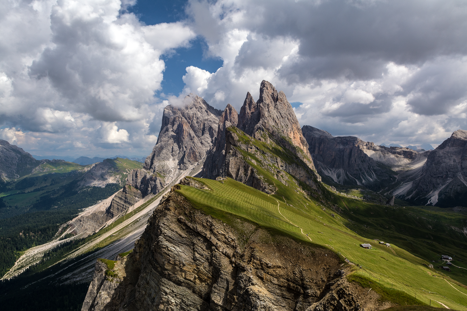Sas Rigais (3,025 m) is a mountain of the northwestern Dolomites in South Tyrol, northern Italy. Along with the nearby Furchetta, which is exactly the same height and only 600m away, it is the highest peak of the Geisler group. Sas Rigais offers hikers one of few Dolomites’ three-thousanders the entire crossing from one side of the mountain to the other. The Via ferrata Villnössersteig is categorized between a B and C difficulty and the trail Sass Rigais steig is rated C. A crucifix is located at the summit.