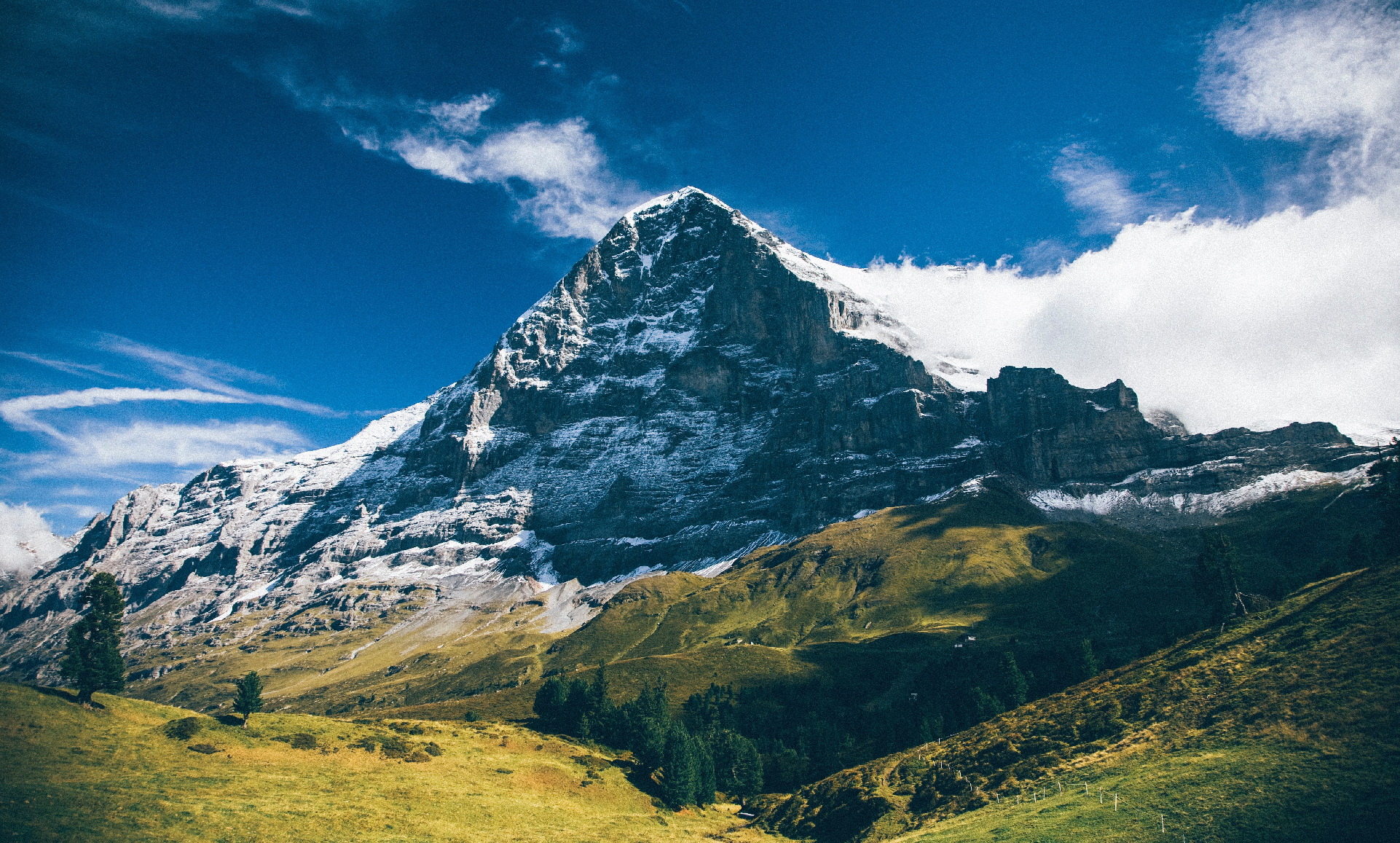 The first mention of Eiger, appearing as “mons Egere”, was found in a property sale document of 1252, but there is no clear indication of how exactly the peak gained its name.[6] The three mountains of the ridge are commonly referred to as the Virgin (German: Jungfrau – translates to “virgin” or “maiden”), the Monk (Mönch), and the Ogre (Eiger; the standard German word for ogre is Oger). The name has been linked to the Latin term acer, meaning “sharp” or “pointed”.
