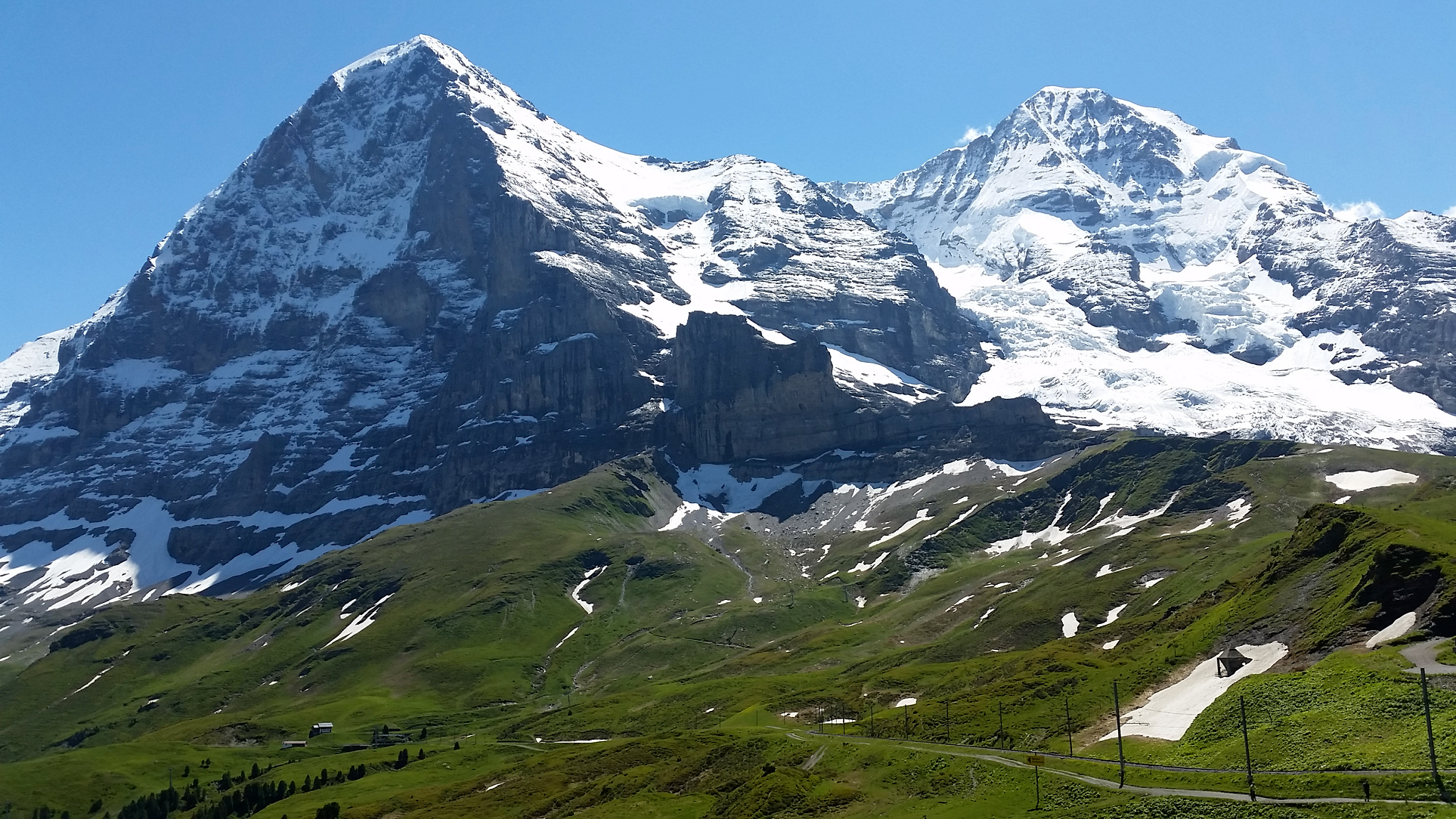 Although the summit of the Eiger can be reached by experienced climbers only, a railway tunnel runs inside the mountain, and two internal stations provide easy access to viewing-windows carved into the rock face. They are both part of the Jungfrau Railway line, running from Kleine Scheidegg to the Jungfraujoch, between the Mönch and the Jungfrau, at the highest railway station in Europe. The two stations within the Eiger are Eigerwand (behind the north face) and Eismeer (behind the south face), at around 3,000 metres. The Eigerwand station has not been regularly served since 2016.