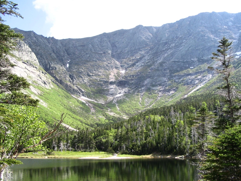 Katahdin is part of a laccolith that formed in the Acadian orogeny when an island arc collided with eastern North America approximately 400 million years ago. On the sides of Katahdin are four glacial cirques carved into the granite by alpine glaciers and in these cirques behind moraines and eskers are several ponds.[8]
