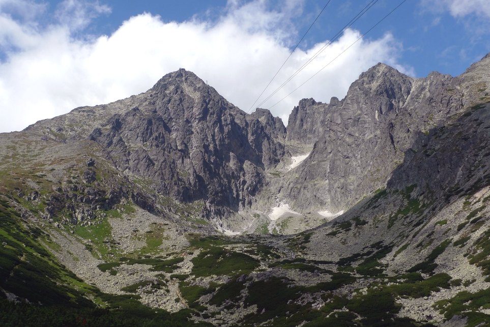 Mięgoszowiecki Szczyt, Mięguszowiecki Szczyt Wielki (German: Groe Mengsdorfer Spitze, word. Ve?k? Mengusovsk? ?t?t, węg. Nagy-Menguszfalvi-cs[1], 2439 m above sea level[2], according to previous measurements of 2438 m) – the summit of the High Tatras, located in the main ridge of the Tatra Mountains on the Polish-Slovak border, between Cubryna (separation is separated by the Hińczowa Passage, 2323 m) and Mięguszowieckie Góra.Mięguszowiecka Przełęcz Wyżnia It is the second highest peak in Poland (20th in the Tatra Mountains) and the highest of the Mięguszowiecki Peaks (the highest in Poland, if only the main top can be taken as a criterion; the “Polish” apex of the Draws is not the main mount[3]). Its northern wall is the highest wall in the Tatras with a slope exceeding 45° it reaches 1043 m high. Alfred Martin wrote of him in 1908: “One of the most powerful and beautiful peaks of the High Tatras.”[4]