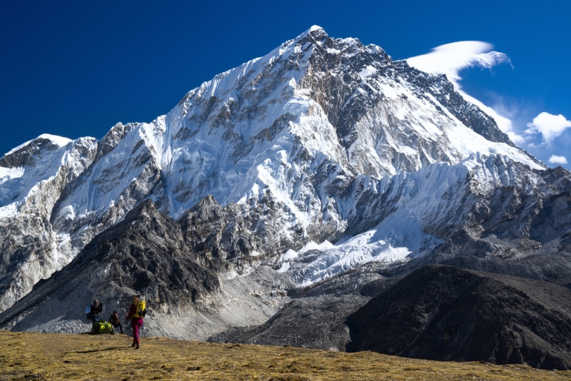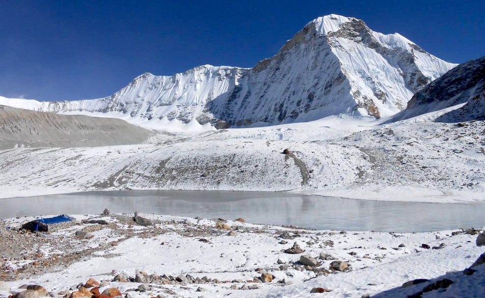 Just a few kilometres west of Cho Oyu is Nangpa La (5,716m/18,753 ft), a glaciated pass that serves as the main trading route between the Tibetans and the Khumbu‘s Sherpas. This pass separates the Khumbu and Rolwaling Himalayas. Due to its proximity to this pass and the generally moderate slopes of the standard northwest ridge route, Cho Oyu is considered the easiest 8,000 metre peak to climb.[4] It is a popular objective for professionally guided parties.