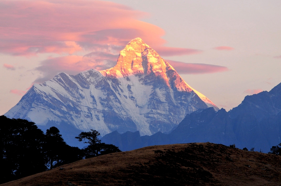Nanda Devi is the second-highest mountain in India, after Kangchenjunga, and the highest located entirely within the country. (Kangchenjunga is on the border of India and Nepal.[6]) Nanda Devi is the 23rd-highest peak in the world and ranked 74th by prominence in Chamoli Garhwal district of Uttarakhand, in northern India.