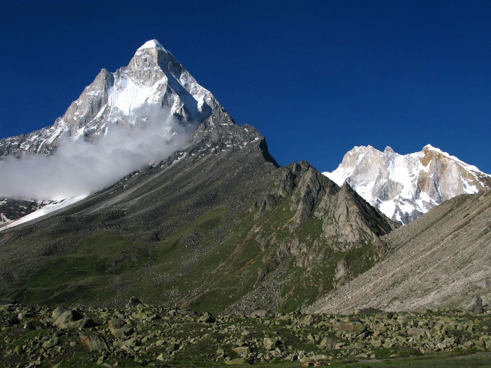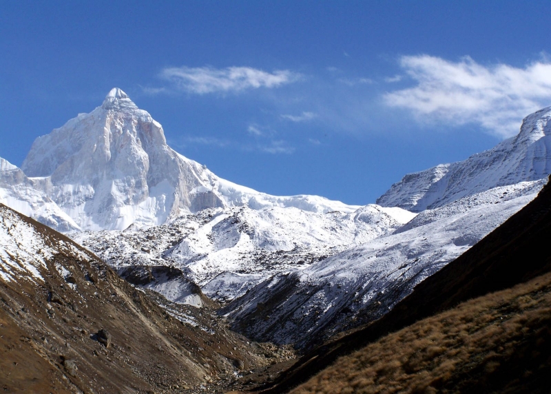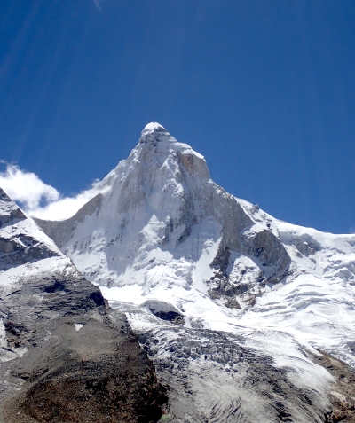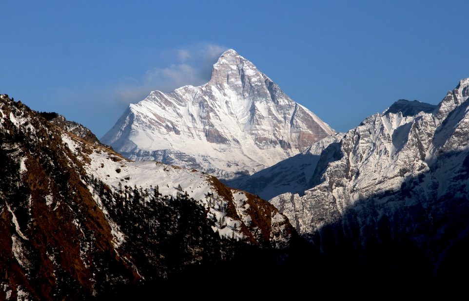 Shivling is a mountain in the Gangotri Group of peaks in the western Garhwal Himalaya, near the snout of the Gangotri Glacier, one of the biggest glaciers in the Himalayas, and Tapovan, a beautiful lush meadows, both being also popular pilgrimage sites in Hinduism. It lies in the northern Indian state of Uttarakhand, 6 kilometres (4 mi) south of the Hindu holy site of Gaumukh (the source of the Bhagirathi River). Its name refers to its status as a sacred symbol – Shiva Linga. It was called “Matterhorn Peak” by early European visitors because of its similarity in appearance to that Alpine peak. While not of locally great elevation, it is a dramatic rock peak, and the most visually striking peak as seen from Gaumukh; that and the difficulty of the climb make it a famed prize for mountaineers.