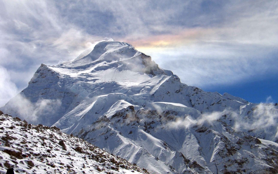 Pumori (Nepali: पुमोरी, Chinese: 普莫里峰) (or Pumo Ri) is a mountain on the Nepal–China border in the Mahalangur section of the Himalayas. Pumori lies just eight kilometres west of Mount Everest. Pumori, meaning “the Mountain Daughter” in Sherpa language, was named by George Mallory. “Pumo” means young girl or daughter and “Ri” means mountain in Sherpa language.[4] Climbers sometimes refer to Pumori as “Everest’s Daughter”.[5] Mallory also called it Clare Peak, after his daughter.