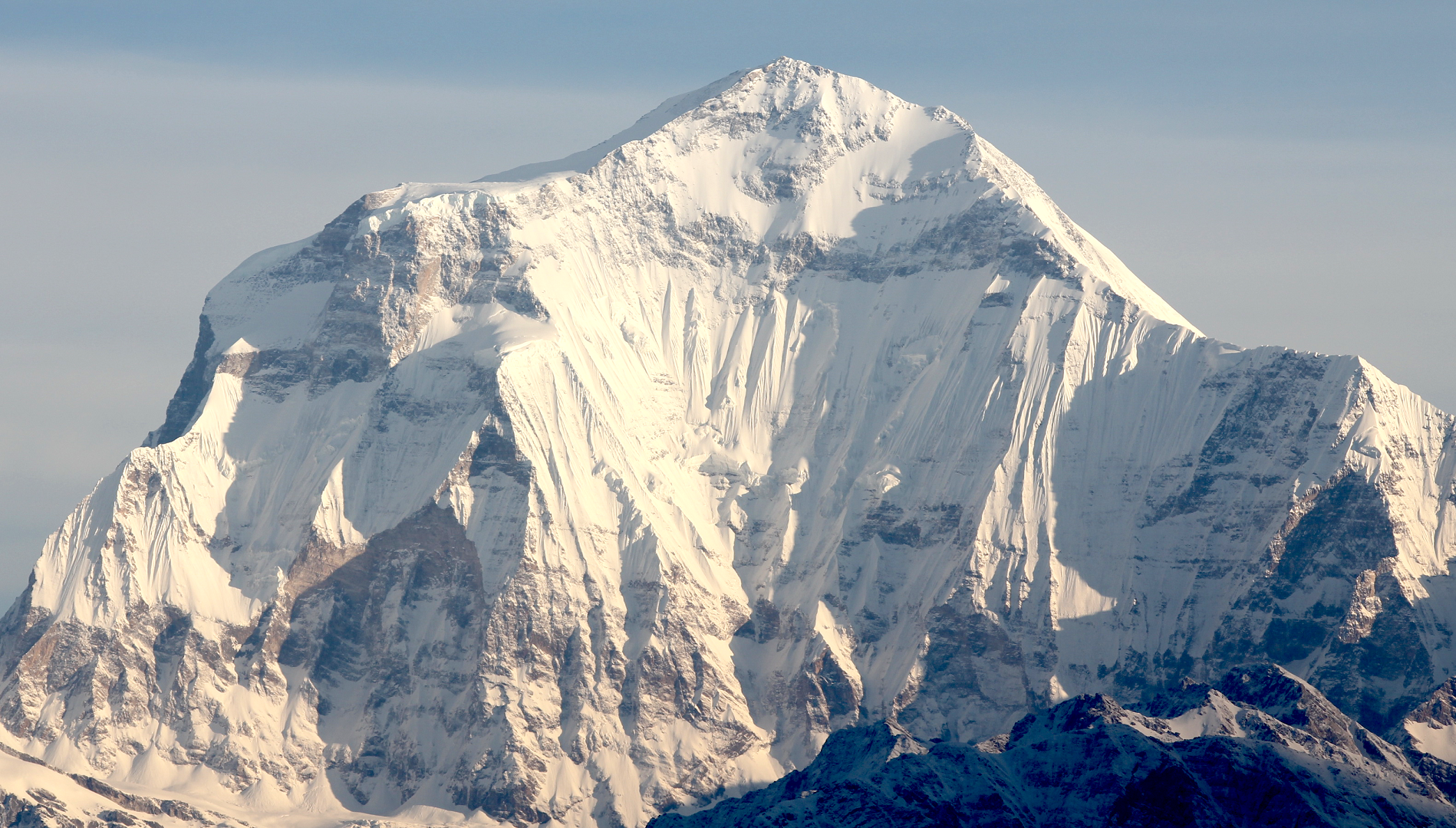 Dhaulagiri was the penultimate eight-thousander to be summitted, and the final in Nepal. As its other routes are disproportionately dangerous, most ascents have followed the Northeast Ridge route of the first ascent, but climbs have been made from most directions. As of 2024, the two aspects which have repelled all attempts along their full length are the Northwest Ridge (though it has been climbed to the summit via the so-called “Pear” buttress) and the South Face. The latter is often regarded as one of the greatest remaining challenges in alpinism.