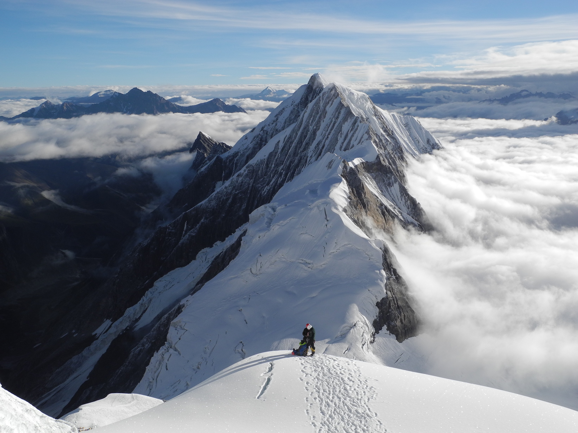The North Pillar route was climbed in 1993 by Hans Kammerlander and Christoph Hainz.