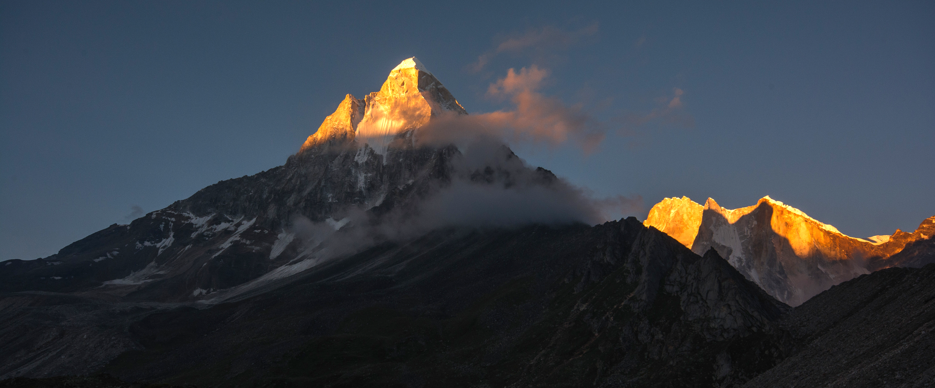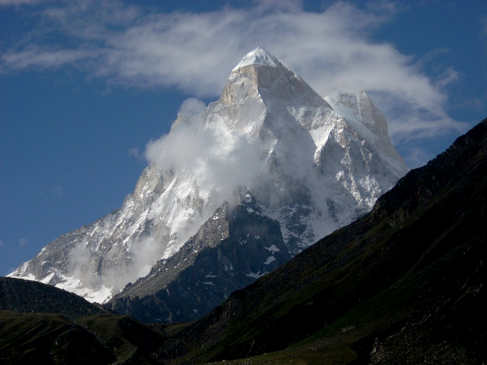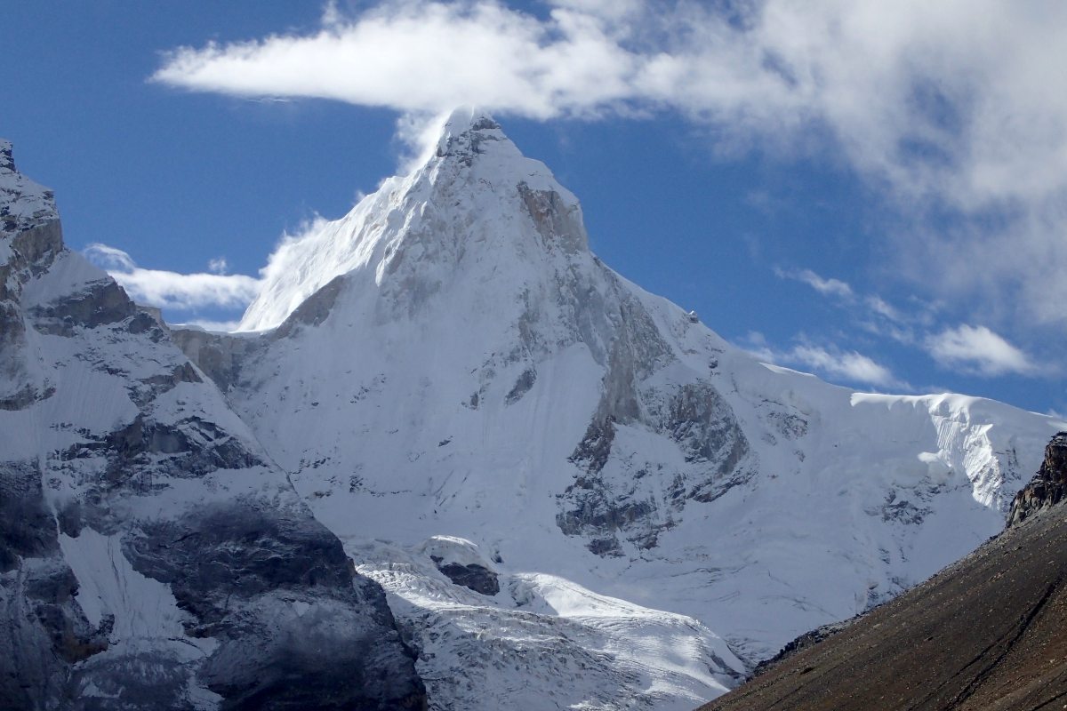 Shivling is a mountain in the Gangotri Group of peaks in the western Garhwal Himalaya, near the snout of the Gangotri Glacier, one of the biggest glaciers in the Himalayas, and Tapovan, a beautiful lush meadows, both being also popular pilgrimage sites in Hinduism. It lies in the northern Indian state of Uttarakhand, 6 kilometres (4 mi) south of the Hindu holy site of Gaumukh (the source of the Bhagirathi River). Its name refers to its status as a sacred symbol – Shiva Linga. It was called “Matterhorn Peak” by early European visitors because of its similarity in appearance to that Alpine peak. While not of locally great elevation, it is a dramatic rock peak, and the most visually striking peak as seen from Gaumukh; that and the difficulty of the climb make it a famed prize for mountaineers.