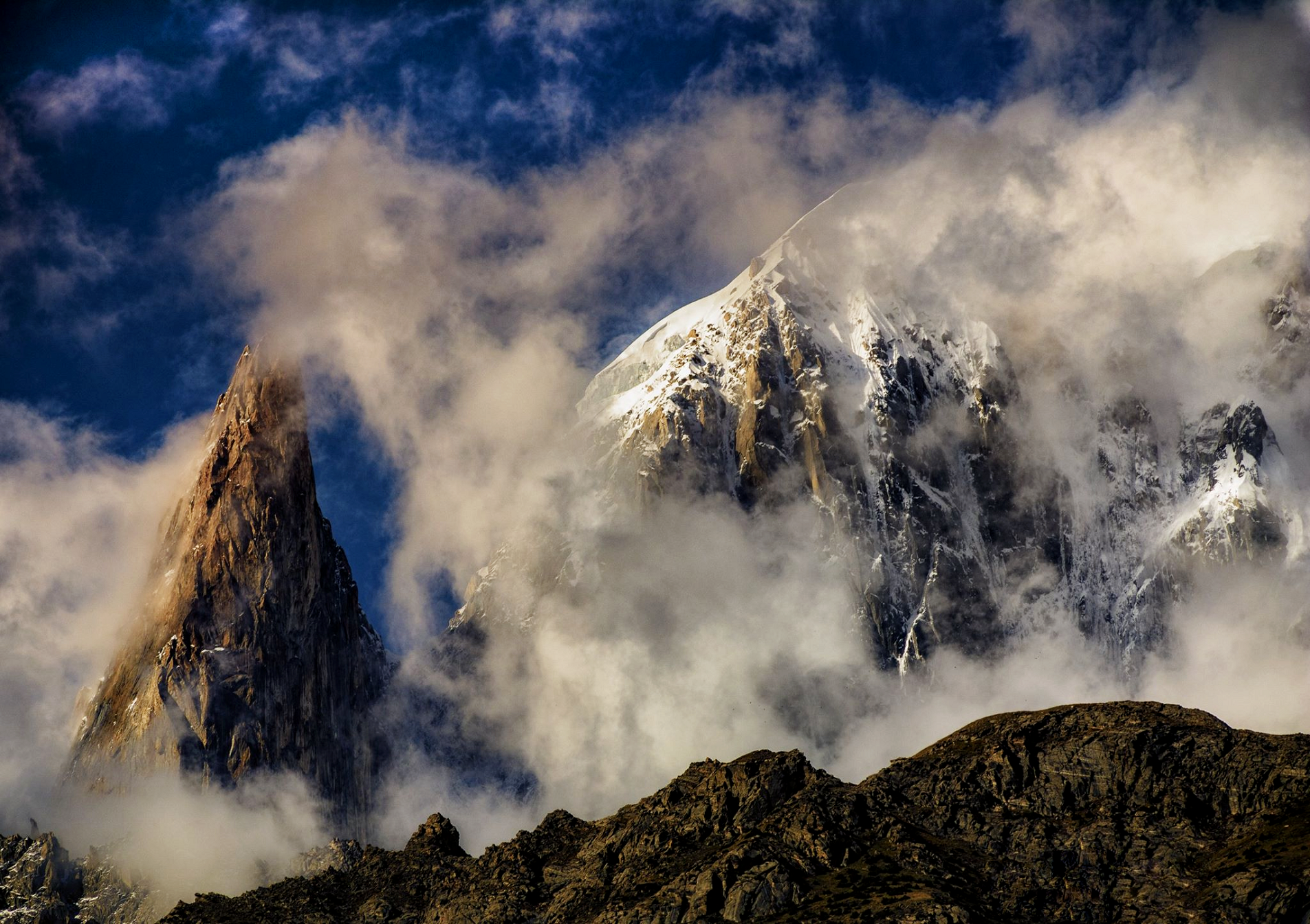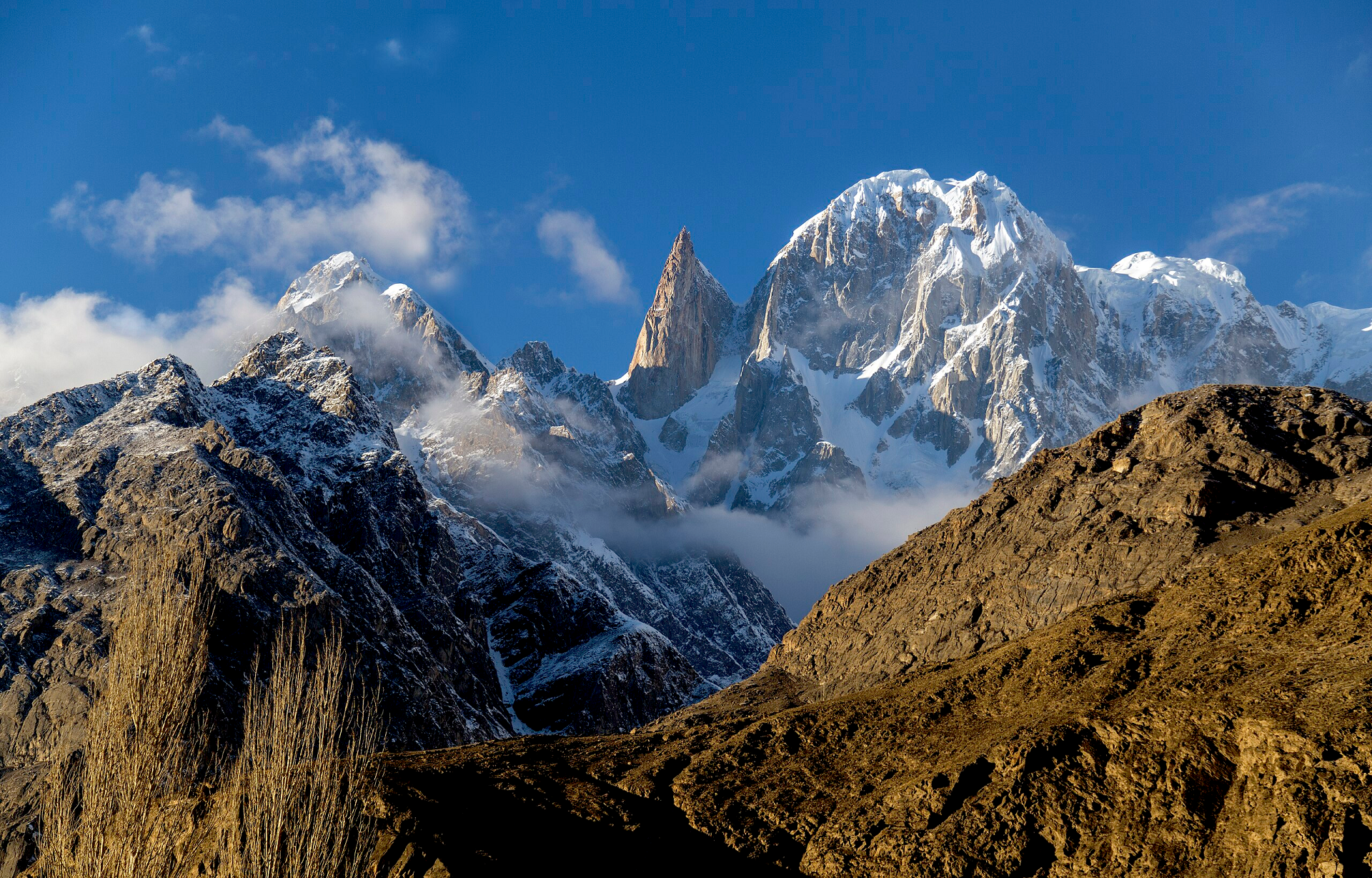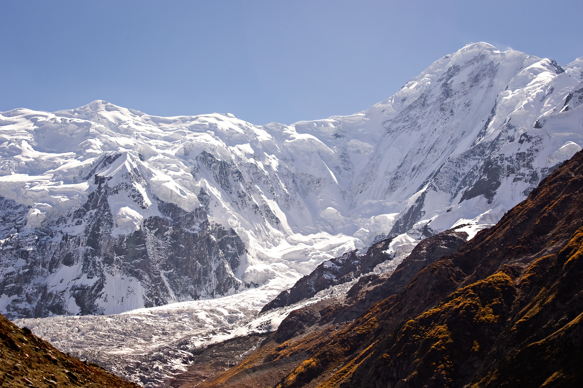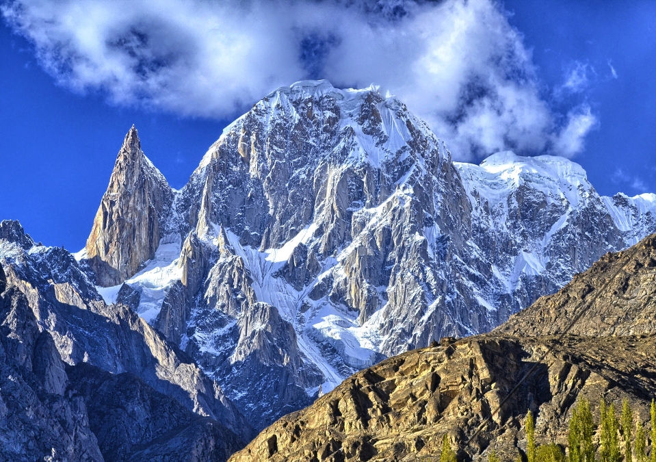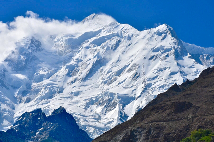Although it is just slightly higher (according to the usual figures) than nearby Rakaposhi, it is not nearly as famous, since it is set back much further from the Hunza Valley.