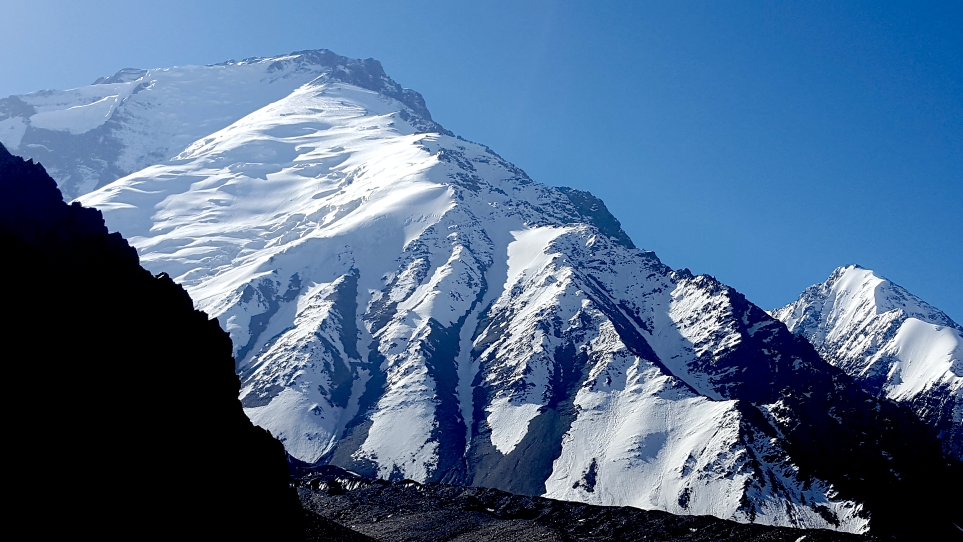 Noshaq, also called Noshakh or Nowshakh (Dari: نوشاخ, Nowshākh, lit. “new horn”), is the second highest peak in the Hindu Kush Range after Tirich Mir at 7,492 m (24,580 ft). It lies on the border of Afghanistan and Pakistan. The north and west sides of the mountain are in Afghanistan whereas the south and eastern sides are in Pakistan. Noshaq is Afghanistan’s highest mountain and is located in the northeastern corner of the country along the border with Pakistan. It is the westernmost 7,000 m (22,966 ft) peak in the world. The easiest access to Noshaq is from Wakhan Afghanistan.