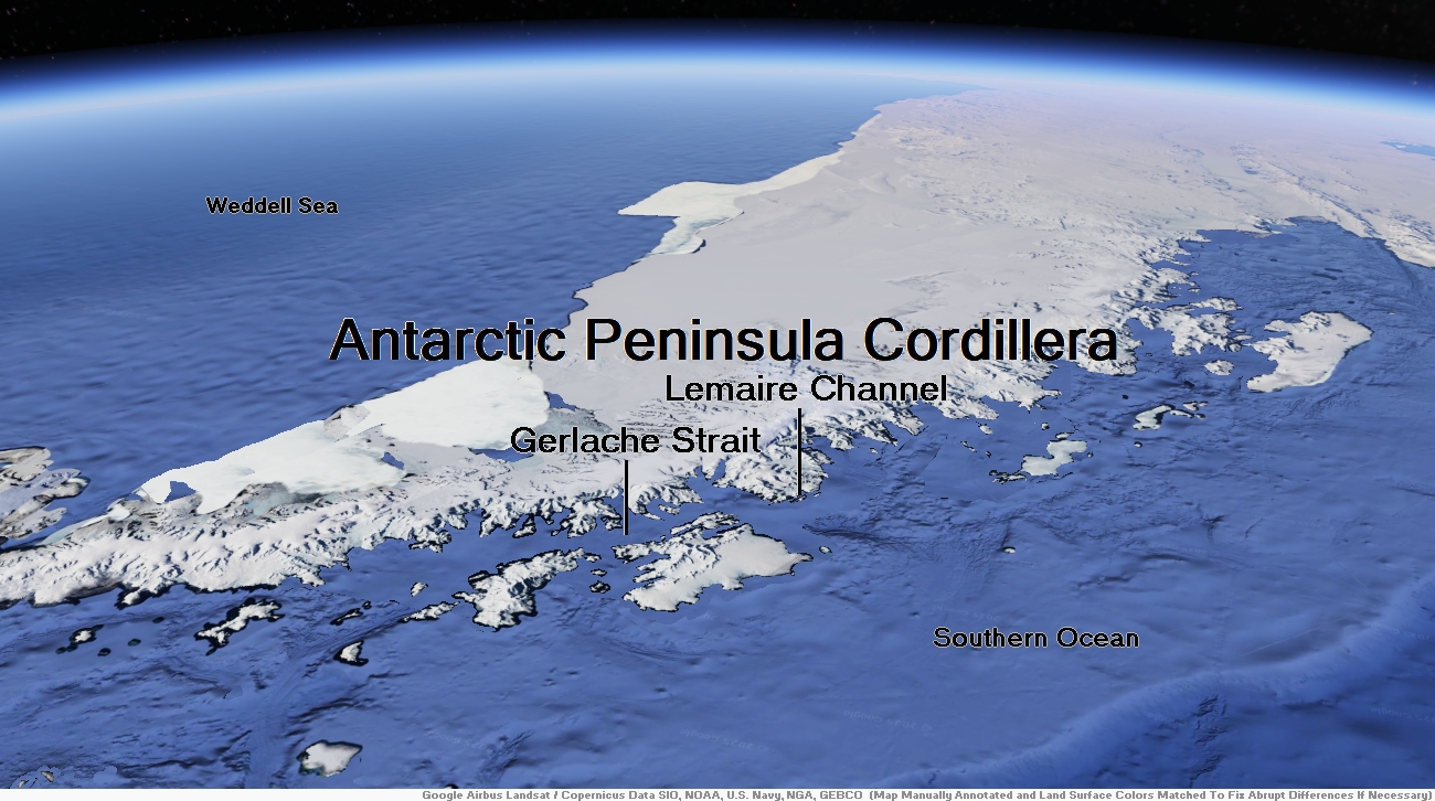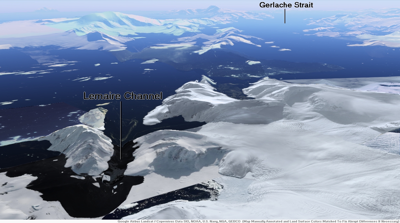 This article uses material from the Wikipedia article Gerlache Strait, which is released under the Creative Commons Attribution-Share-Alike 4.0 International License (view authors).