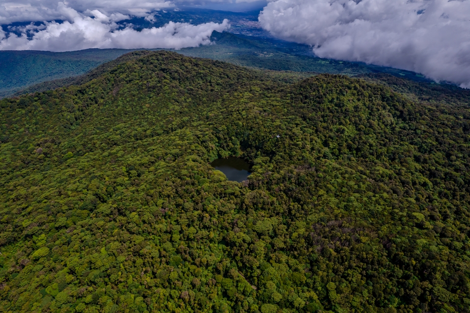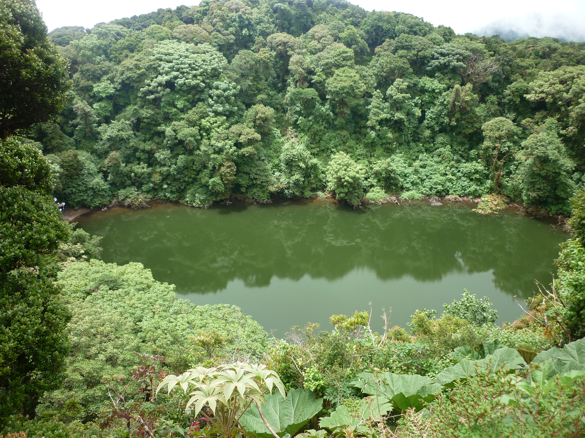 Lake Botos, the southern lake, fills an inactive crater, with the latest eruption in 7500 BC. It is cold and clear, and is surrounded by a cloud forest within the National Park boundaries.