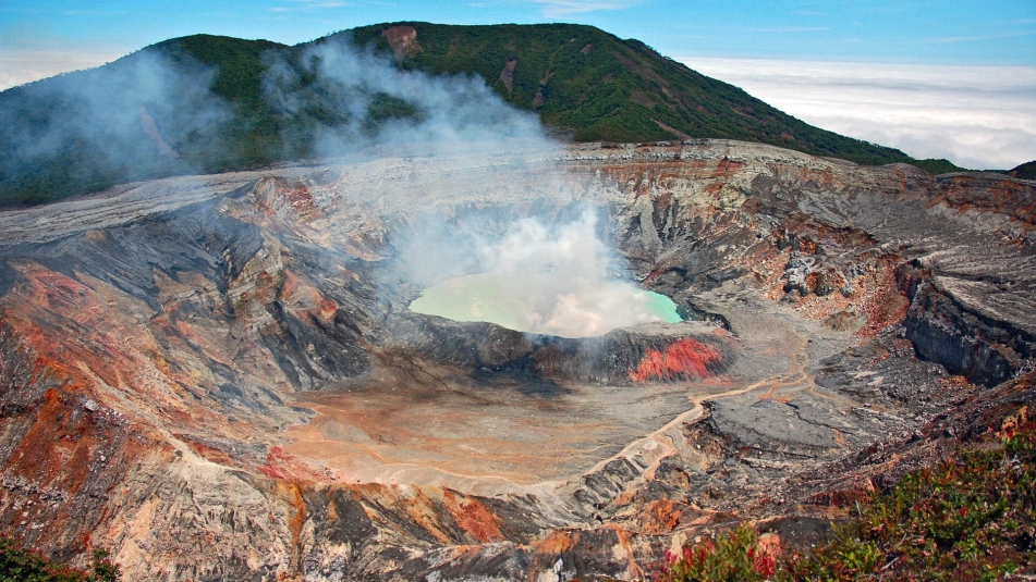 On February 25, 2014, a webcam from the Volcanological and Seismological Observatory of Costa Rica (OVSICORI) captured the moment a dark cloud exploded about 1,000 feet in the air from a massive crater of the Poás Volcano. This volcano remains active today.[8][9] Poás is one of the 9 volcanoes currently monitored by the Deep Earth Carbon Degassing Project. The project is collecting data on the carbon dioxide and sulfur dioxide emission rates from subaerial volcanoes.[10]