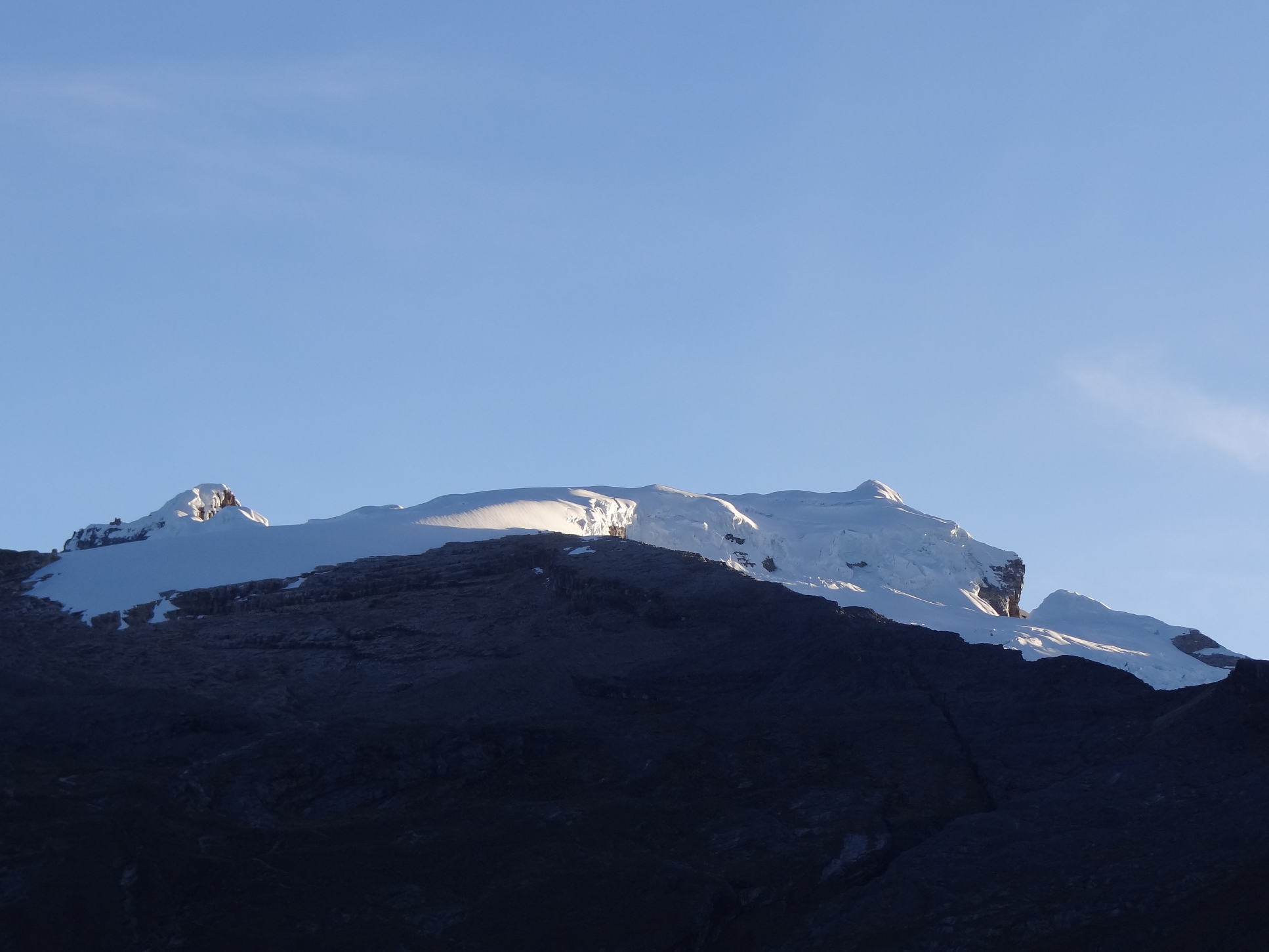 Ritacuba Blanco is the highest peak of Cordillera Oriental, in the Andes Mountains of Colombia. It’s also named Ritak’uwa, an ancient name from the U’wa indigenous people that live in the lowlands of the National Park Sierra Nevada del Cocuy y Güicán, where the Ritacuba Blanco is located. The summit is accessible from the west via the town of El Cocuy, the village of Güicán, and the hamlet of Las Cabañas. The hike is fairly easy, but the weather is not reliable, and a glacier must be crossed. Because of global warming, its glacier is melting at very high rates, backing down 25 linear mts per year; the same is happening at amazing speeds to all other snow-covered tropical mountains in Colombia. In 1950, Ritacuba Blanco’s glacier extended down to 4,100 metres (13,500 ft) above sea level; in January 2007 its lowest point was at 4,500 metres (14,800 ft) above sea level. If this melting rate continues, the glacier is expected to disappear before 2055.