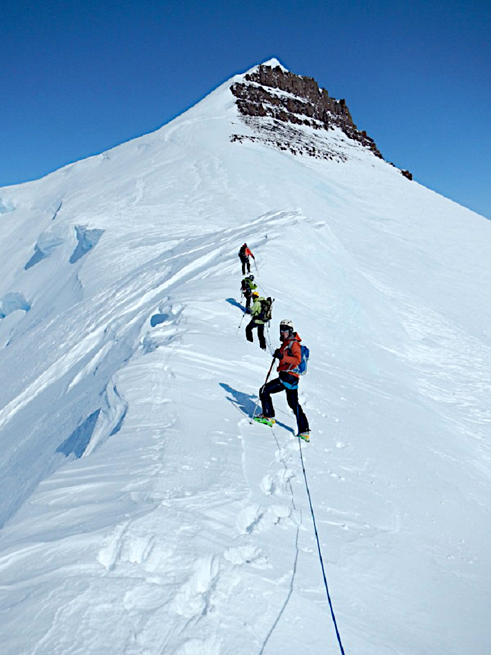 The first ascent of the peak was made on 15 August 1929 by the Cambridge Expedition to East Greenland led by Scottish polar explorer James Wordie (1890–1962).[3] the second ascent by John Haller and Wolfgang Diehl on 9 August 1951.[10]