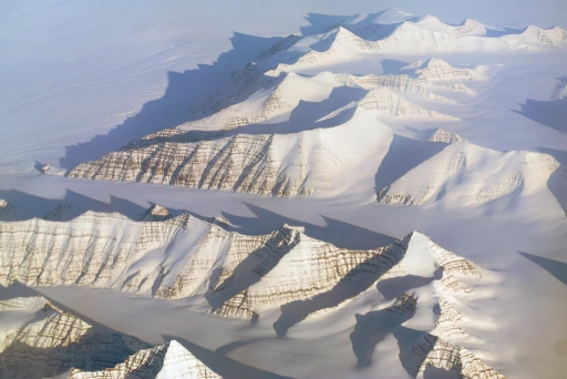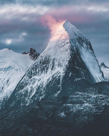 Petermann Peak rises to a height of 2,943 metres (9,656 ft) on a nunatak located the northern side of the Nordenskiöld Glacier, in western Fraenkel Land in the inner Kaiser Franz Joseph Fjord. It has a magnificent appearance, dominating the surrounding landscape. The Gregory Glacier flows from its northeastern side into the Knækdalen valley.[6] The Kalifbjerg (2667 m), Kerberus (c. 2500 m), Gog (c. 2600 m) and Magog (c. 2400 m) peaks are located to the north of Petermann Peak. Initially believed to be the highest peak in Greenland, this mountain is one of the most renowned summits in northeastern Greenland together with Payer Peak located nearby.