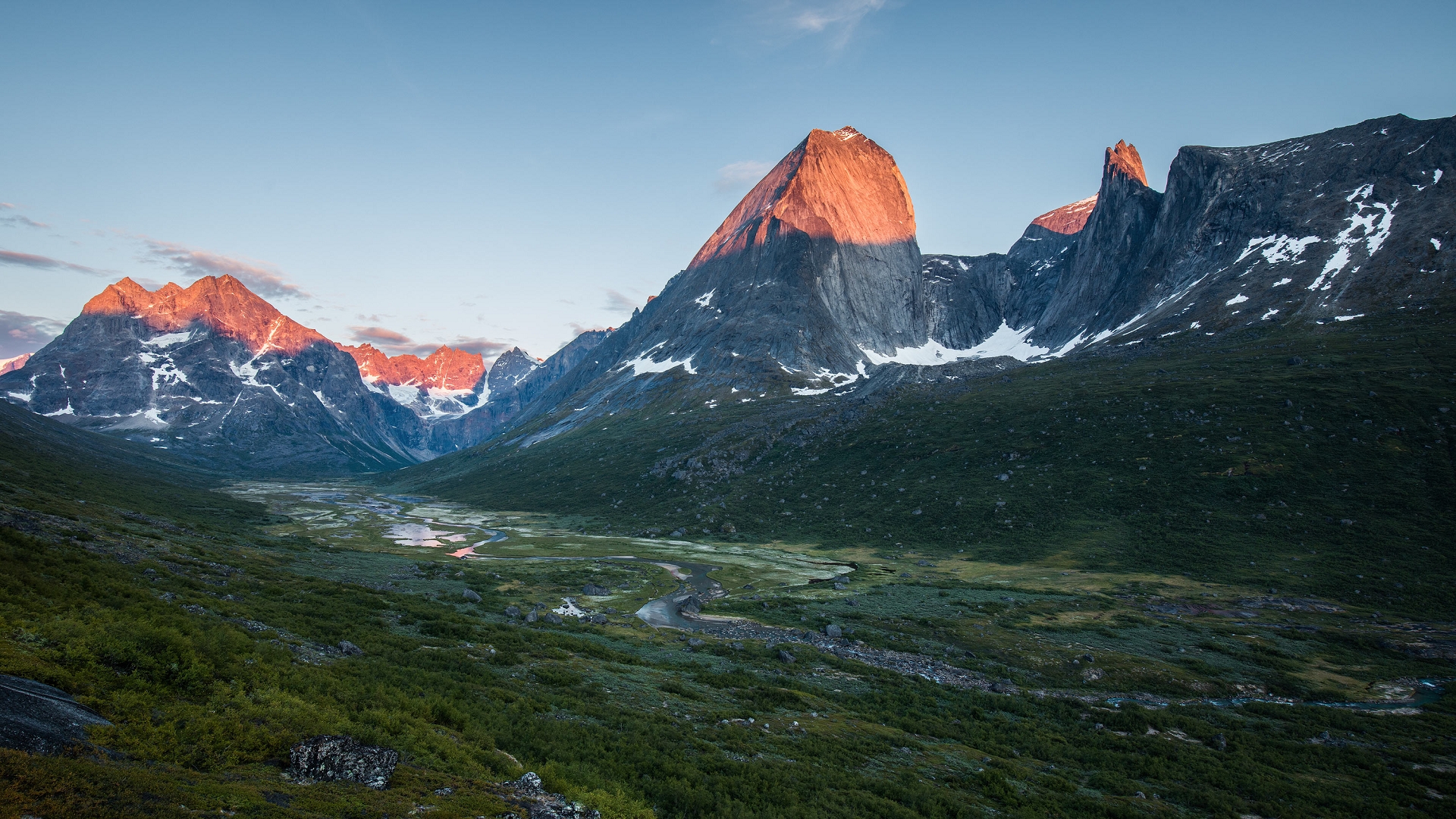 Ketil’s granite walls are similar to Tiningnertok‘s (Apostelen Tommelfinger), another massive peak in the east coast.[3]