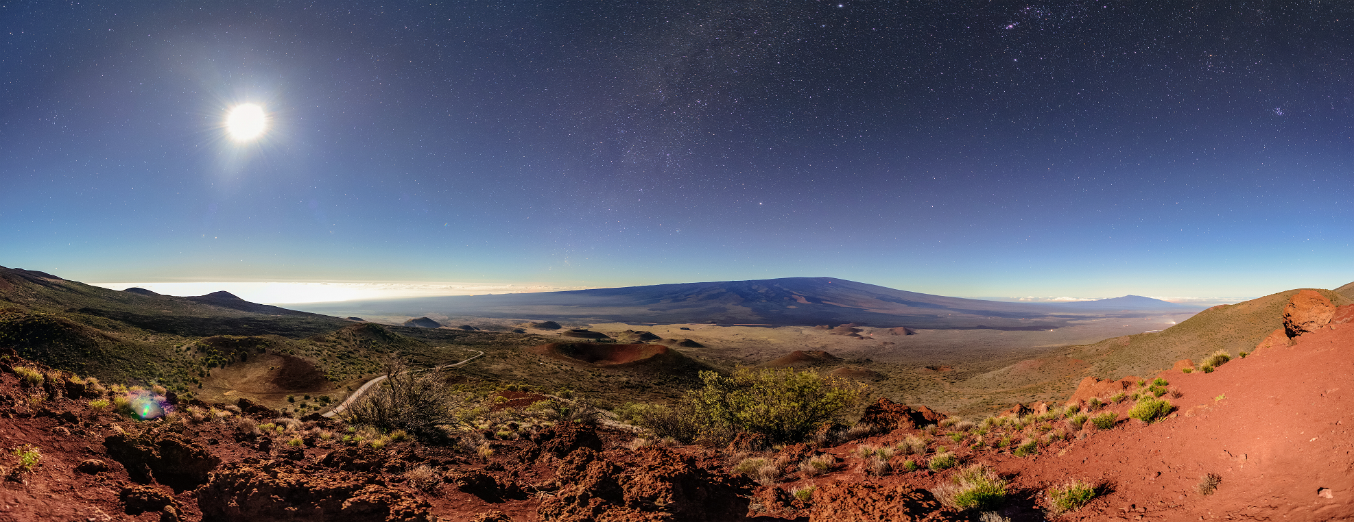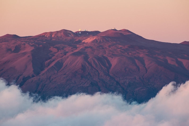 With its high elevation, dry environment, and stable airflow, Mauna Kea’s summit is one of the best sites in the world for astronomical observation. Since the creation of an access road in 1964, thirteen telescopes funded by eleven countries have been constructed at the summit. The Mauna Kea Observatories are used for scientific research across the electromagnetic spectrum and comprise the largest such facility in the world. Their construction on a landscape considered sacred by Native Hawaiians continues to be a topic of debate to this day.