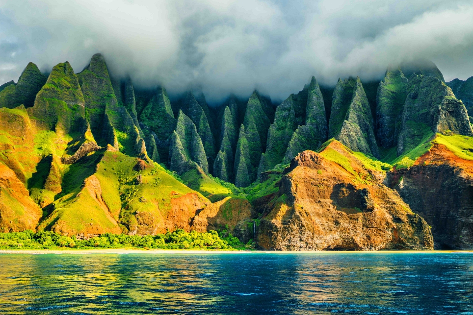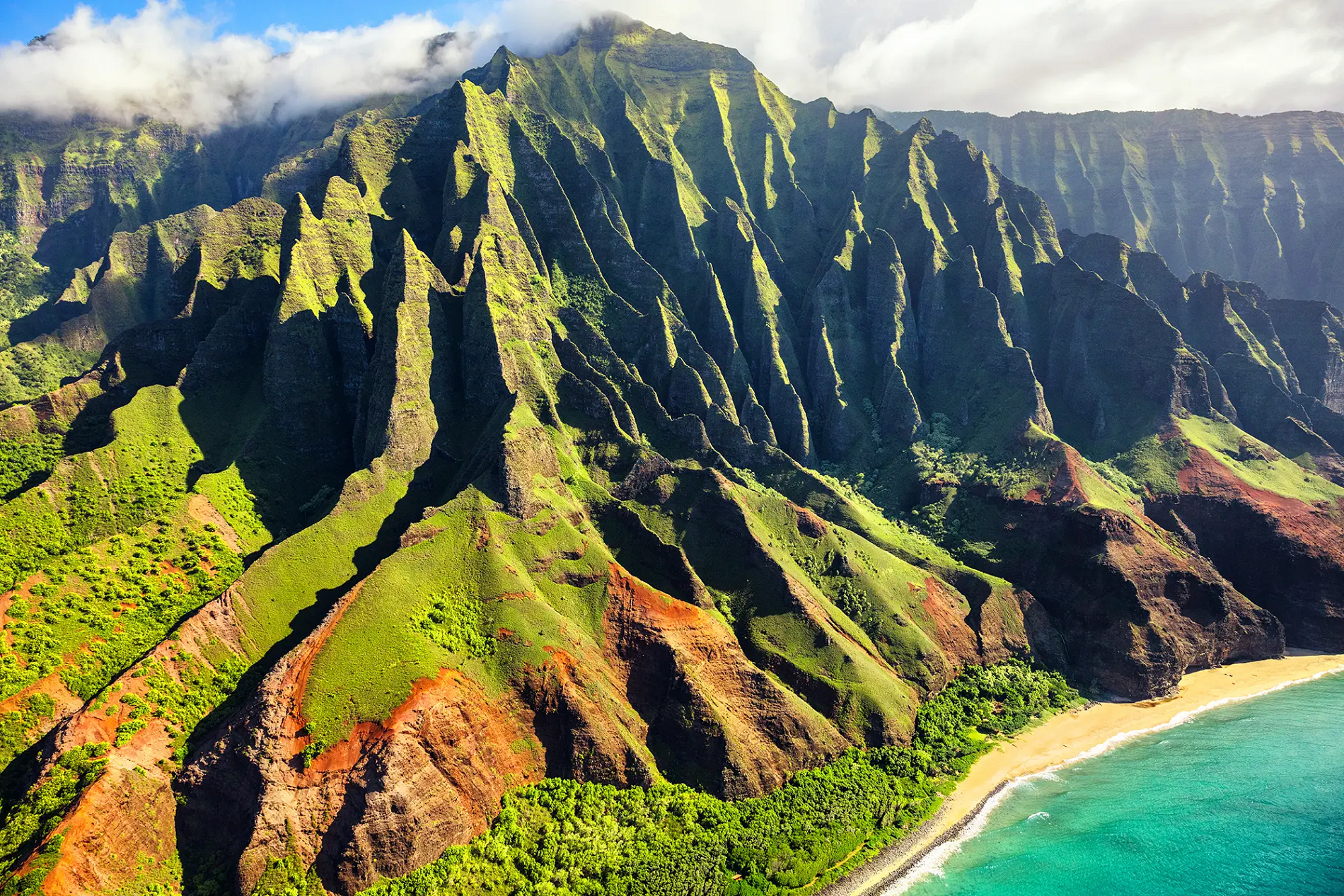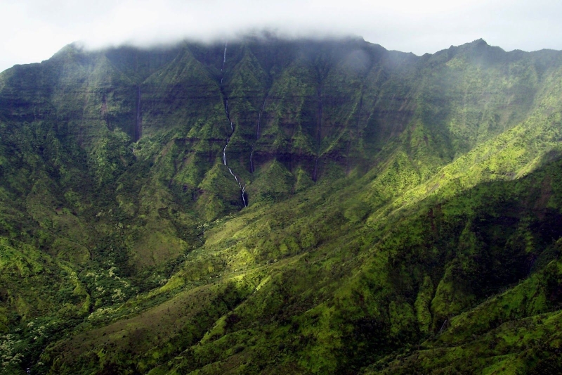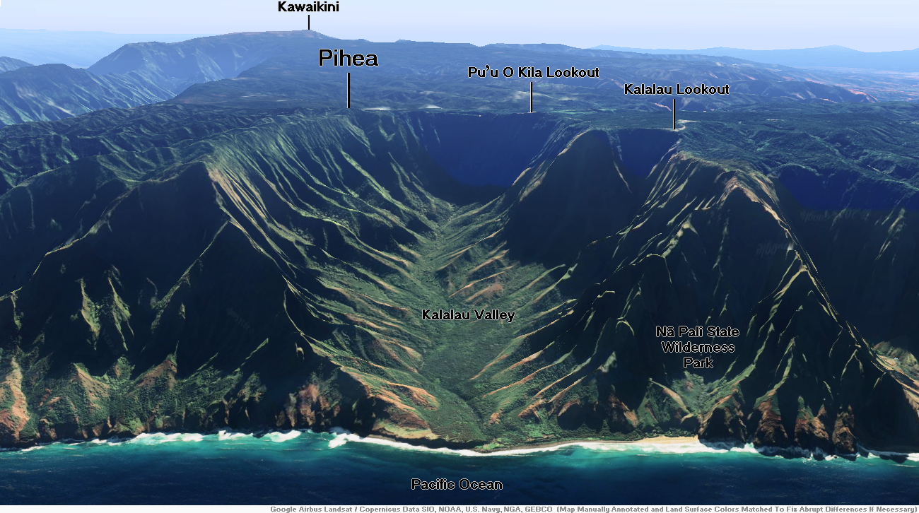 Kawaikini is a shield volcano on the Hawaiian Island of Kauai and in Kauai County and measures 5,243 feet (1,598 m) in elevation.[2] It is the summit of the island’s inactive central shield volcano, Mount Waialeale.[3] Other peaks on Kauai include: Waialeale (5,148 feet), Namolokama Mountain (4,421 feet), Kalalau Lookout (4,120 feet), Keanapuka Mountain (4,120 feet), Haupu (2,297 feet) and Nounou (1,241 feet).[4]