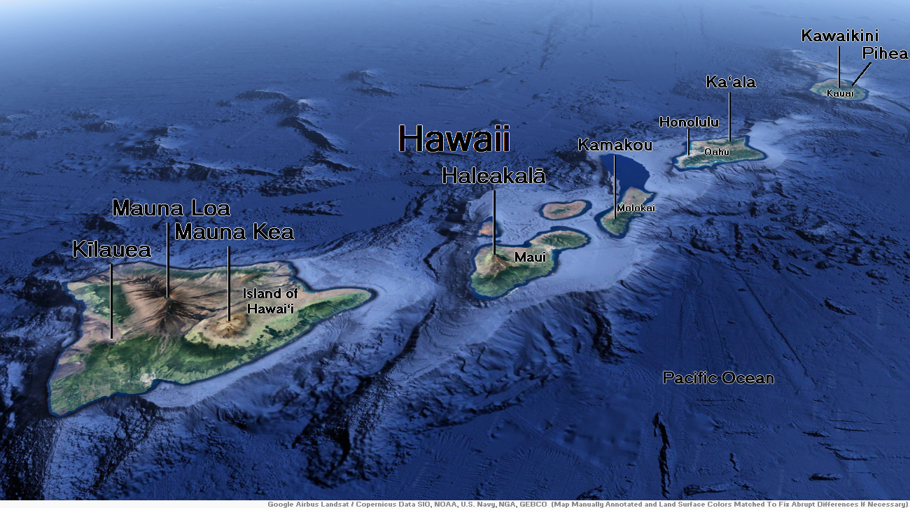 Mauna Kea (/ˌmɔːnə ˈkeɪə, ˌmaʊnə -/,[6] Hawaiian: [ˈmɐwnə ˈkɛjə]; abbreviation for Mauna a Wākea)[7] is a dormant shield volcano on the island of Hawaiʻi.[8] Its peak is 4,207.3 m (13,803 ft) above sea level, making it the highest point in Hawaii and the island with the second highest high point, behind New Guinea, the world’s largest tropical island with multiple peaks that are higher. The peak is about 38 m (125 ft) higher than Mauna Loa, its more massive neighbor. Mauna Kea is unusually topographically prominent for its height: its prominence from sea level is fifteenth in the world among mountains, at 4,207.3 m (13,803 ft); its prominence from under the ocean is 9,330 m (30,610 ft), rivaled only by Mount Everest. This dry prominence is greater than Everest’s height above sea level of 8,848.86 m (29,032 ft), and some authorities have labeled Mauna Kea the tallest mountain in the world, from its underwater base.[a] Mauna Kea is ranked 8th by topographic isolation.[citation needed]