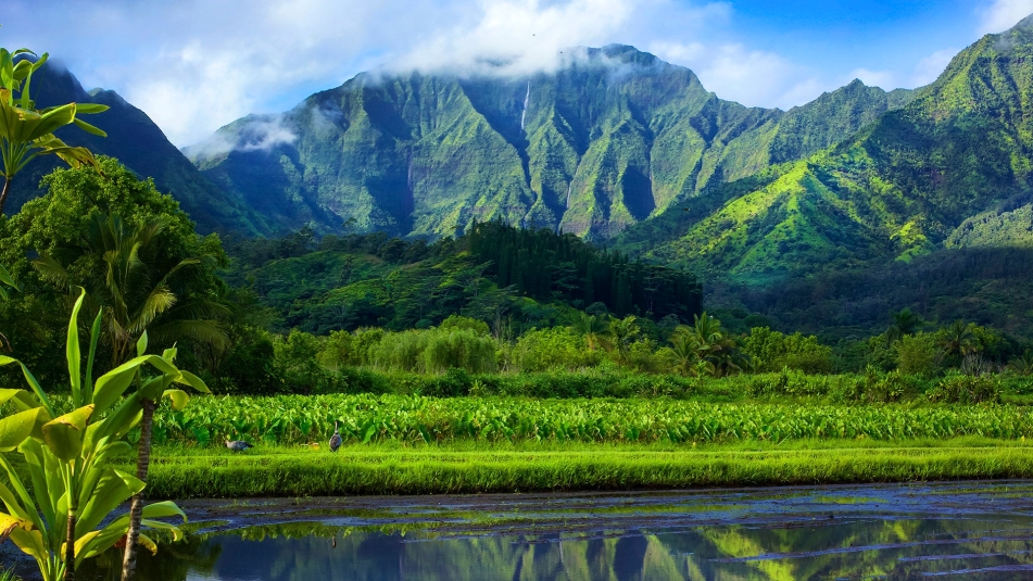 The valley is surrounded by cliffs more than 2,000 feet (610 m) high. This valley’s bottom is broad and relatively flat, with an accessible region about 2 miles (3.2 km) long and 0.5 miles (0.80 km) wide. The abundant sun and rain provides an ideal environment for flora and fauna. Many Native Hawaiians lived in the valley into the 20th century, farming taro from a vast complex of terraced fields. Today, its designation as a state park forbids anyone from residing there.