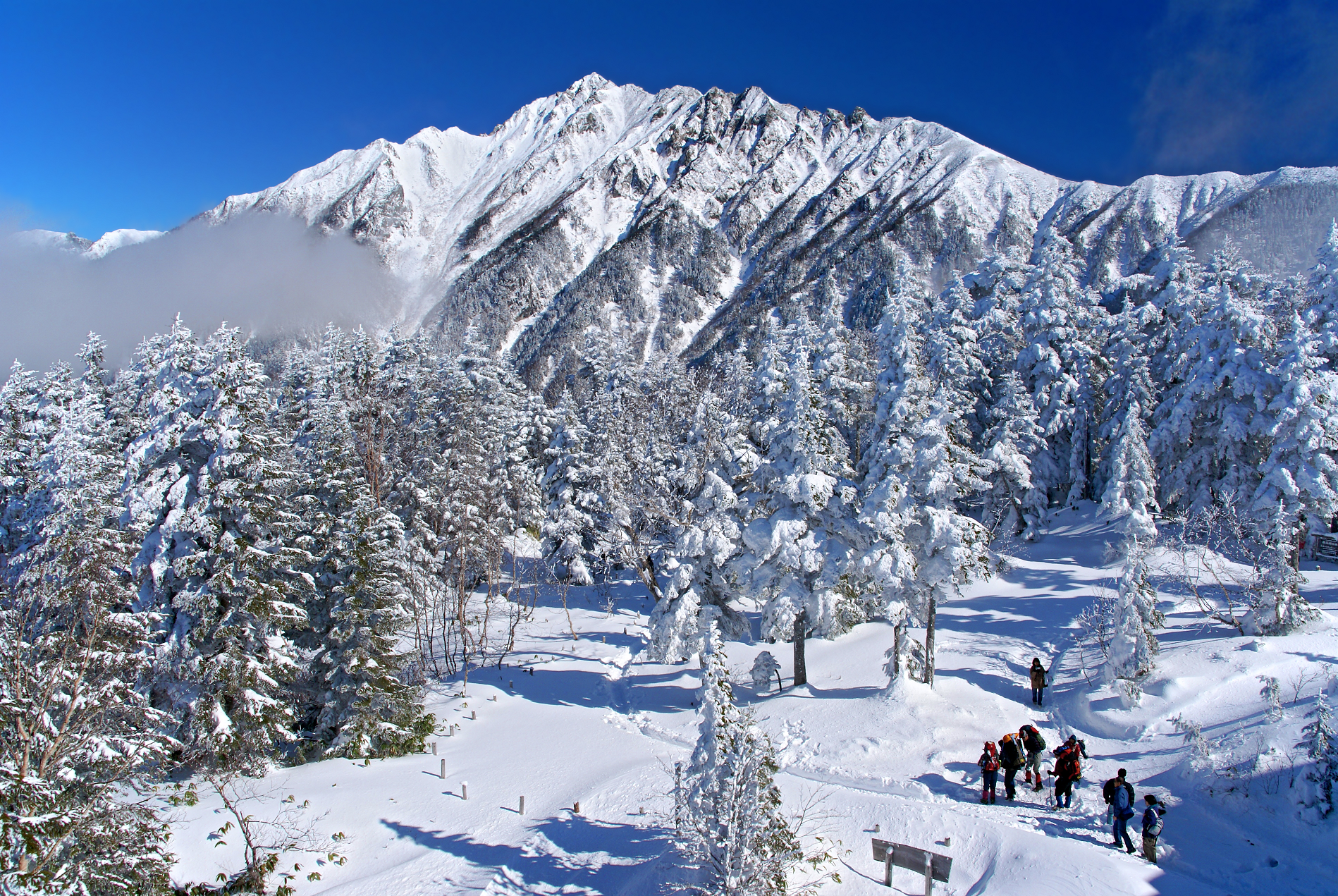 Mount Myōjin (明神岳, Myōjin-dake), with a peak of 2,931 m (9,616 ft), lies on a mountain ridge stretching south from Mount Maehotaka. There are many climbing routes in this area.
