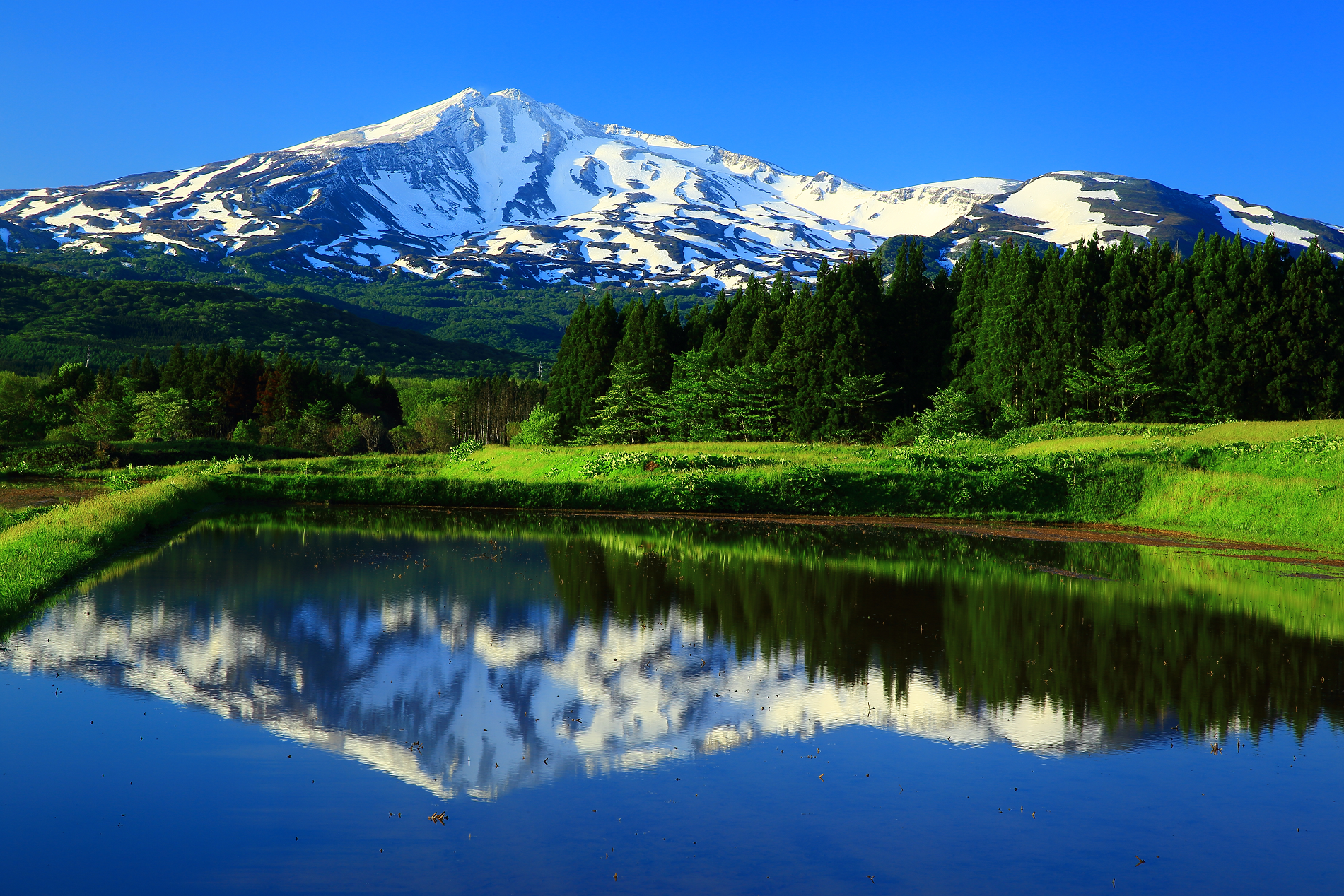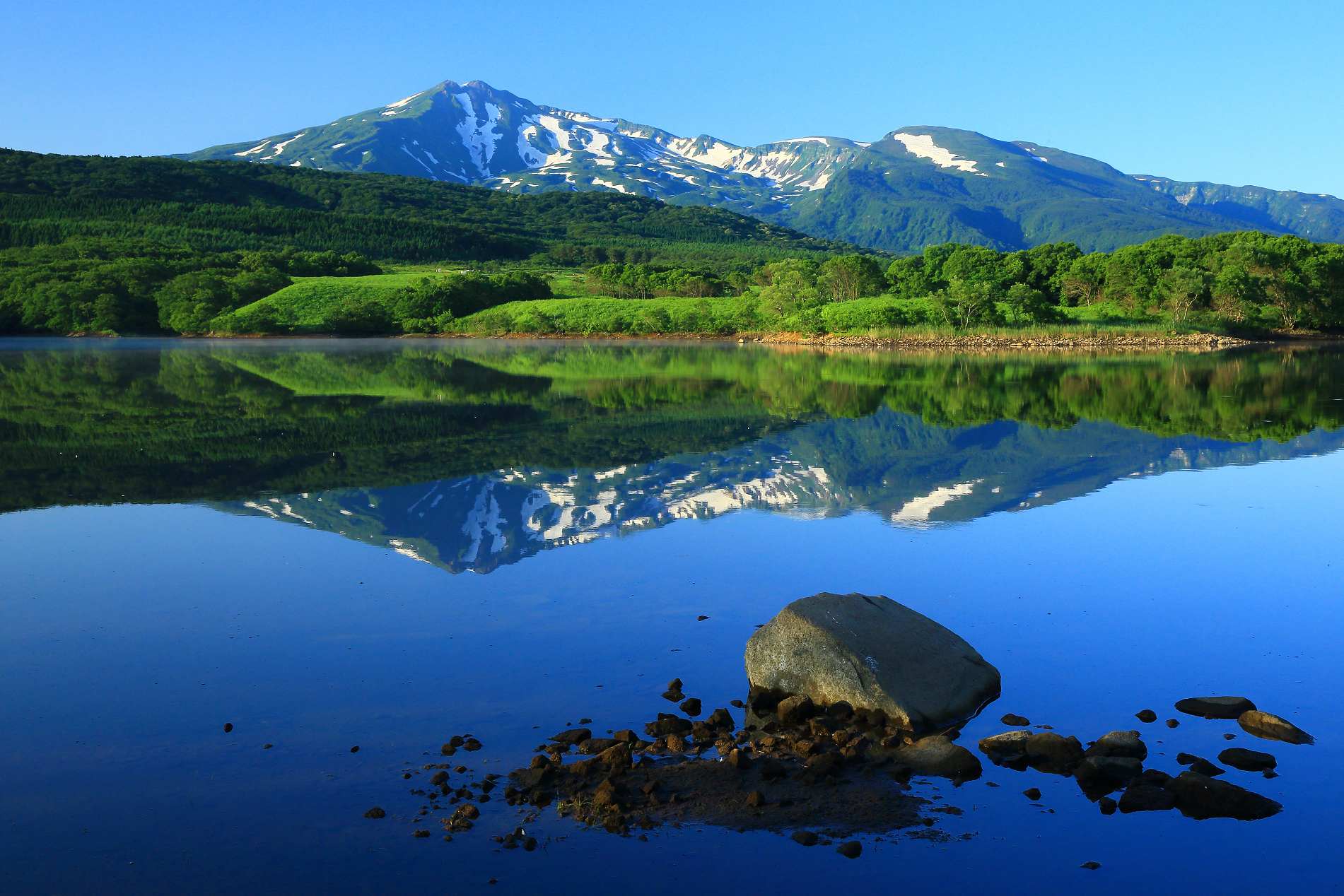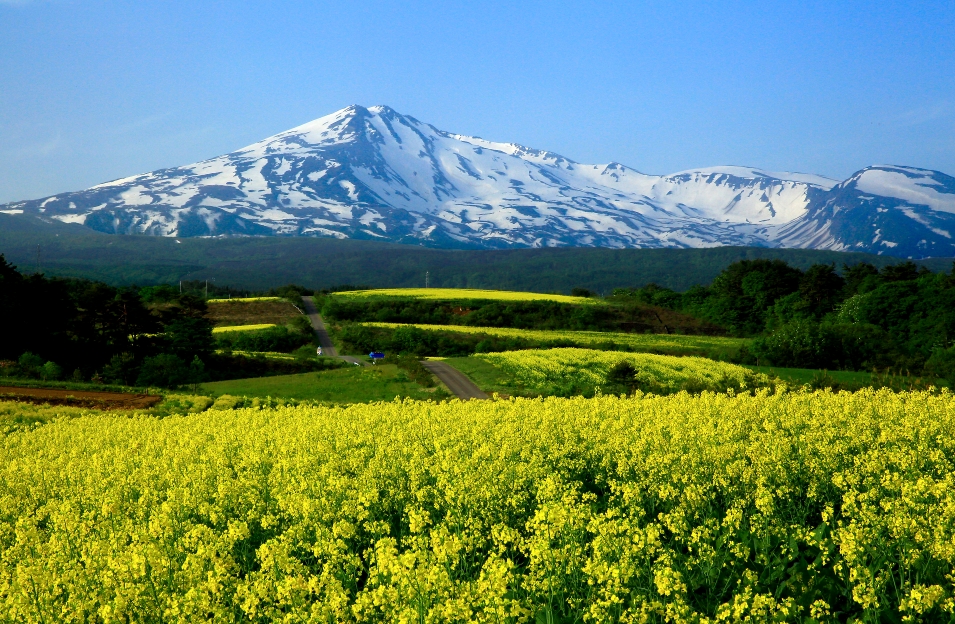 Mount Chōkai is shared by two municipalities in Akita Prefecture and four municipalities Yamagata Prefecture; however, its peak is located in Yuza, on the Yamagata side of the border. It is therefore the highest peak in Yamagata, and the second highest in the Tōhoku region after Mt. Hiuchigatake (altitude 2,356 m). The highest elevation of Mount Chōkai within Akita Prefecture has an altitude of 1,775 meters, and thus the mountain is also the highest in Akita Prefecture. From the summit, it is possible to see the Shirakami Mountains and Mount Iwaki to the north, Sado Island to the south and the Pacific Ocean to the east.