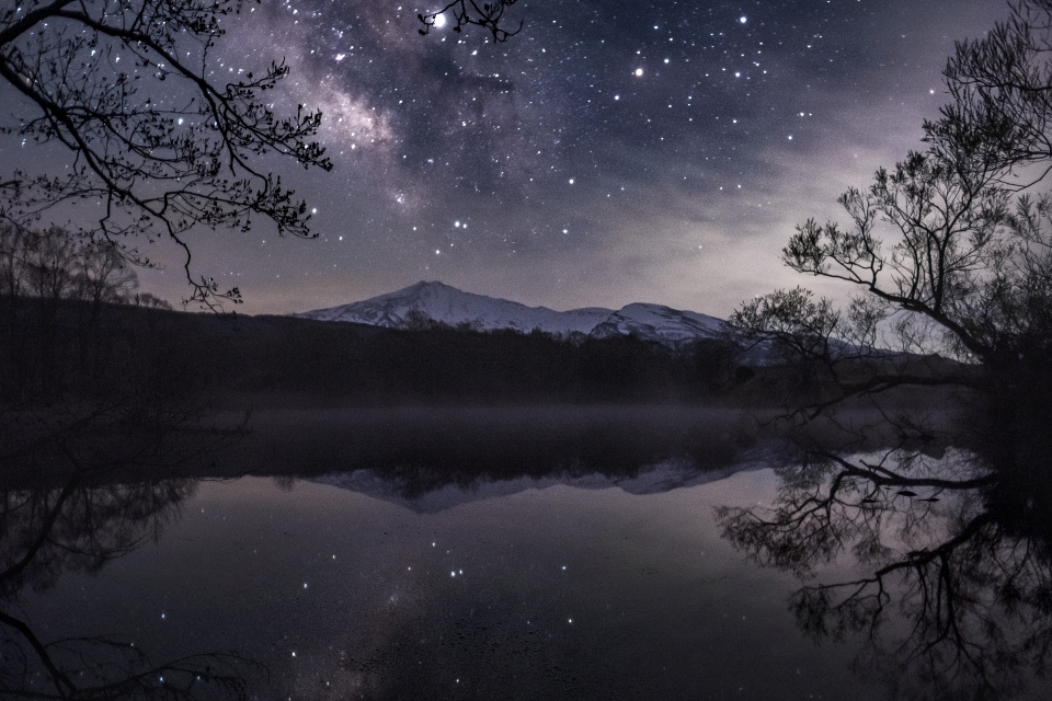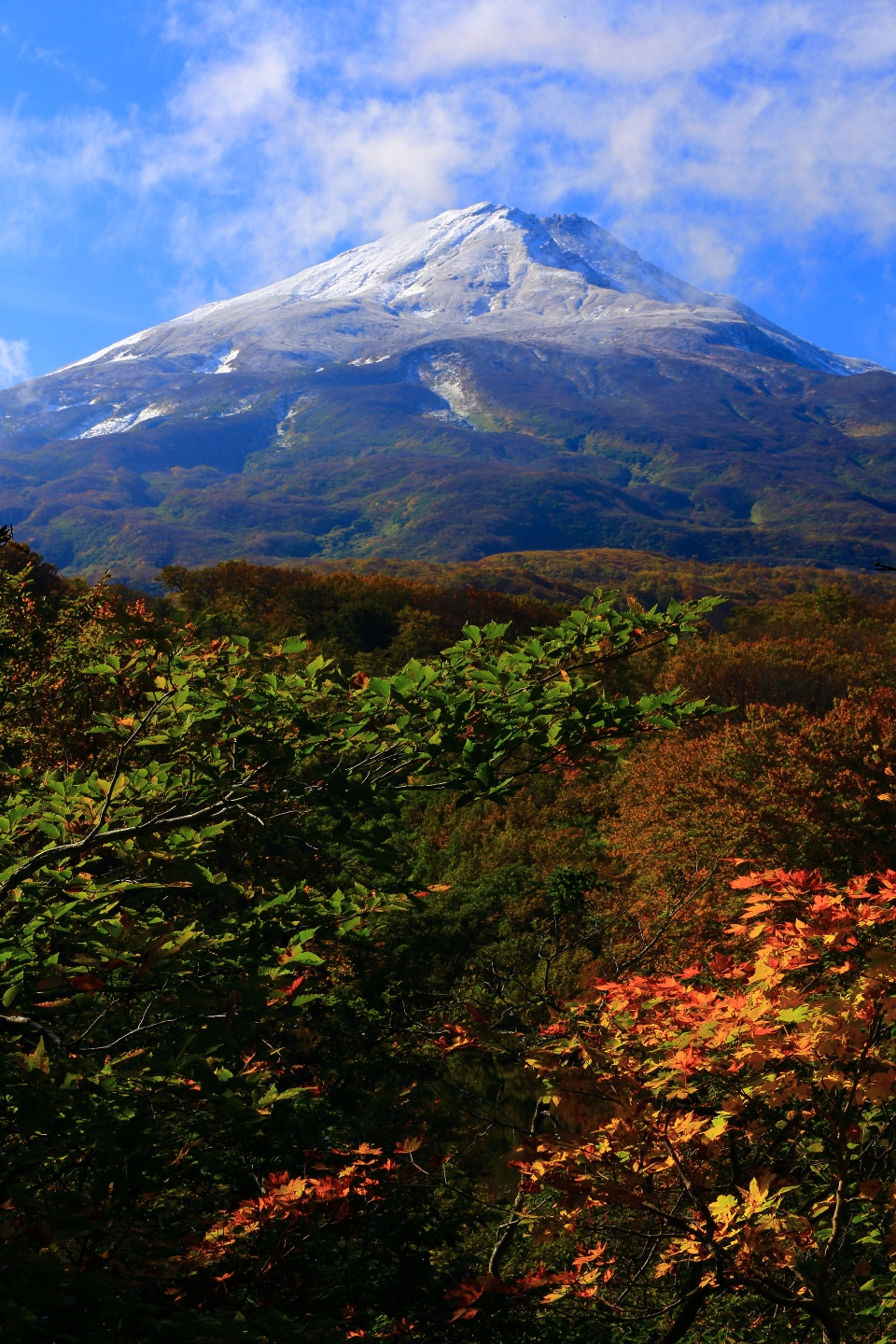 Mount Chōkai is a complex stratovolcano made of two old and new newer volcanoes, composed primarily of basalt or andesite.