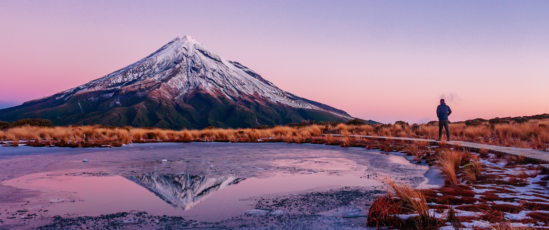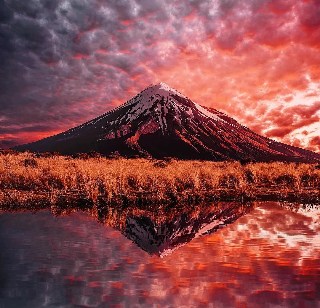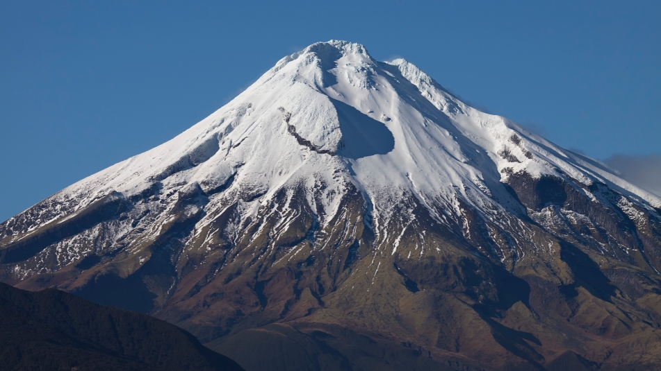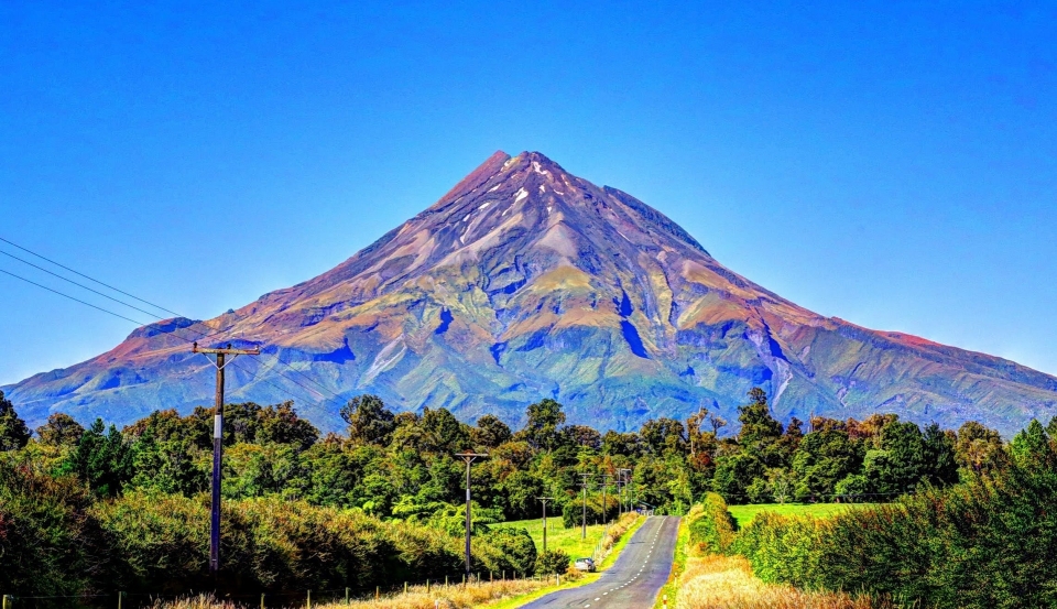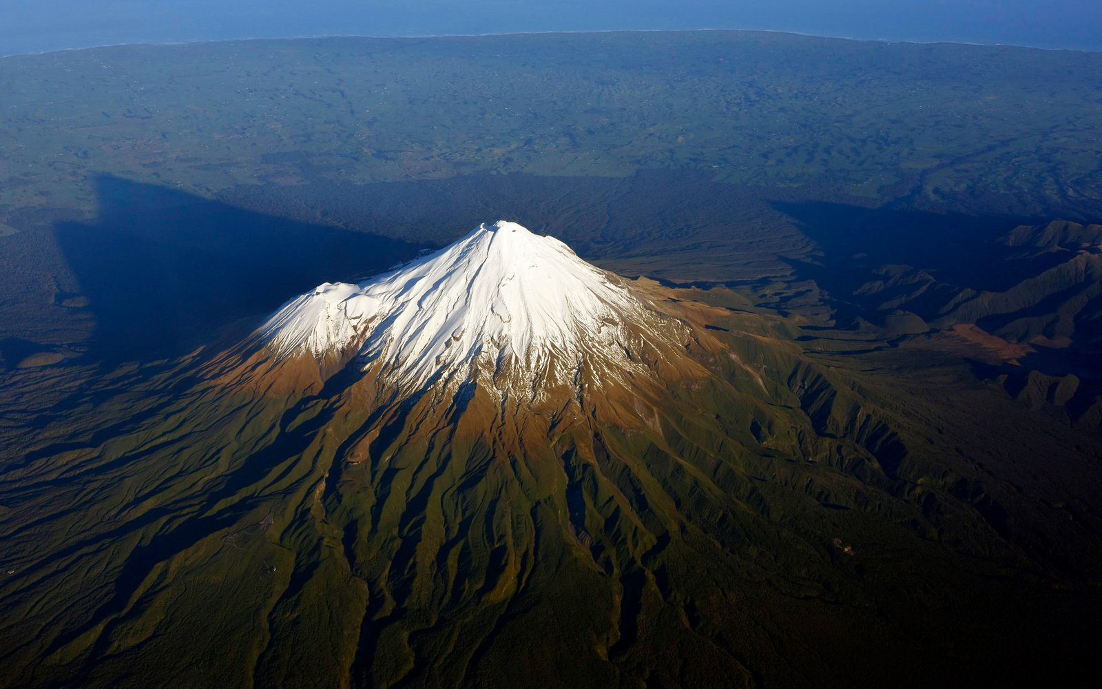 Mount Taranaki (Māori: Taranaki Maunga, also known as Mount Egmont) is a dormant stratovolcano and legal person in the Taranaki region on the west coast of New Zealand’s North Island.[5][6][7] At 2,518 metres (8,261 ft), it is the second highest mountain in the North Island, after Mount Ruapehu. It has a secondary cone, Fanthams Peak (Māori: Panitahi), 1,966 metres (6,450 ft), on its south side.[8]