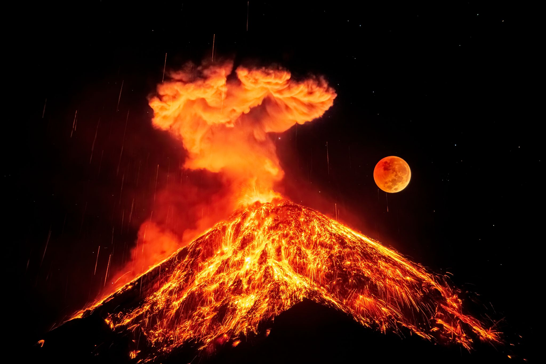Volcán de Fuego (Spanish pronunciation: [bolˈkan de ˈfweɣo]; Spanish for “Volcano of Fire”, often shortened to Fuego) or Chi Q’aq’ (Kaqchikel for “where the fire is”) is an active stratovolcano in Guatemala, on the borders of Chimaltenango, Escuintla and Sacatepéquez departments.