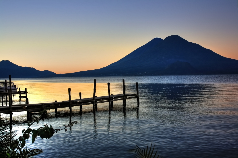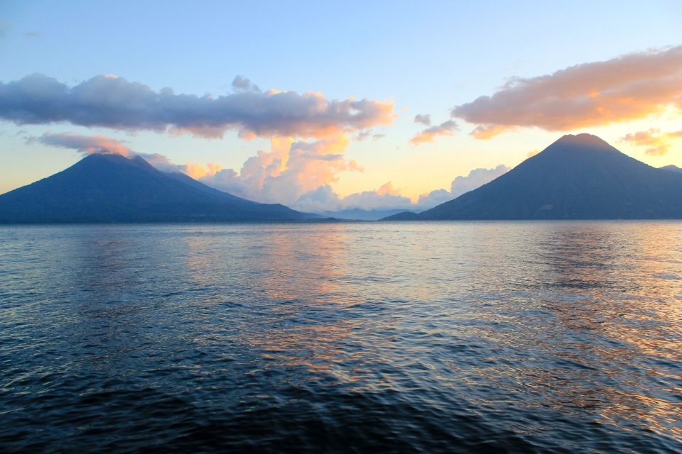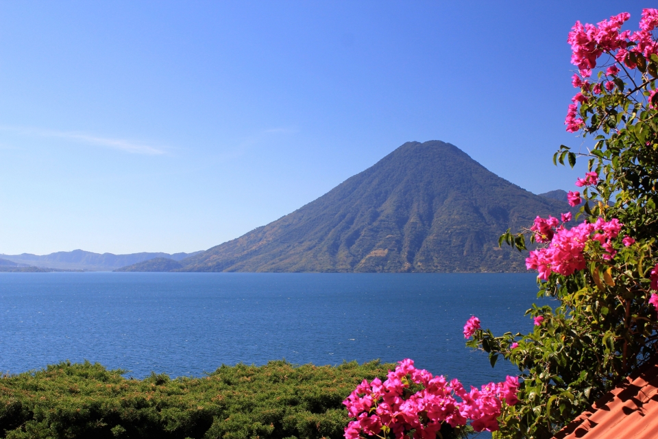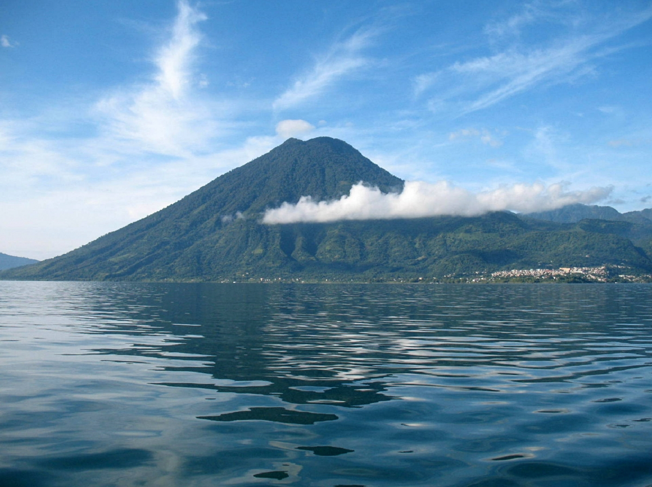 Volcán Atitlán is a few miles south of Volcán Tolimán, which rises from the southern shore of Lake Atitlán. Volcán San Pedro rises above Lake Atitlán northwest of Volcán Atitlán. A long narrow bay separates Volcán Atitlán and Volcán Toliman from Volcán San Pedro.