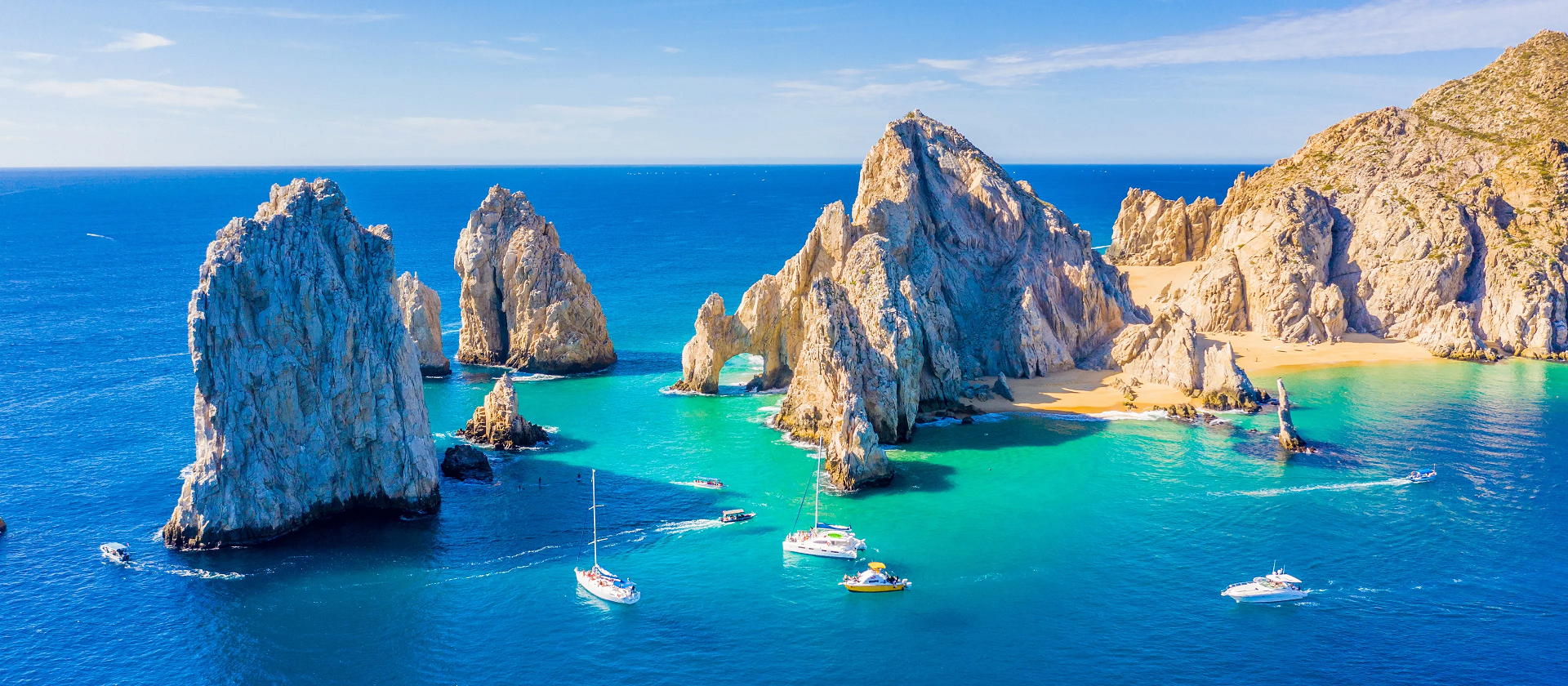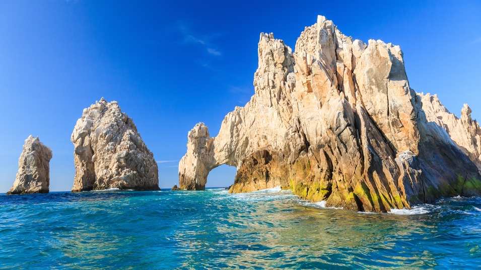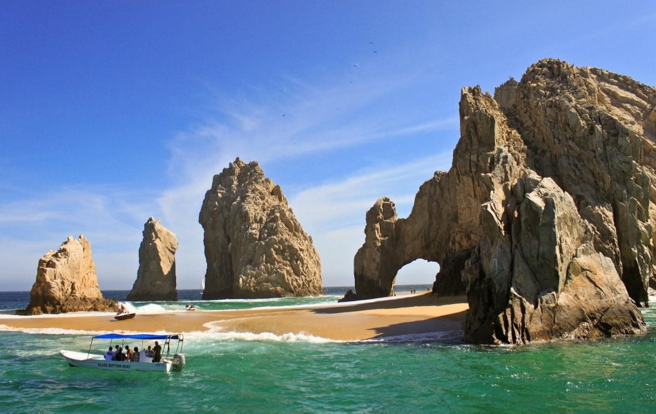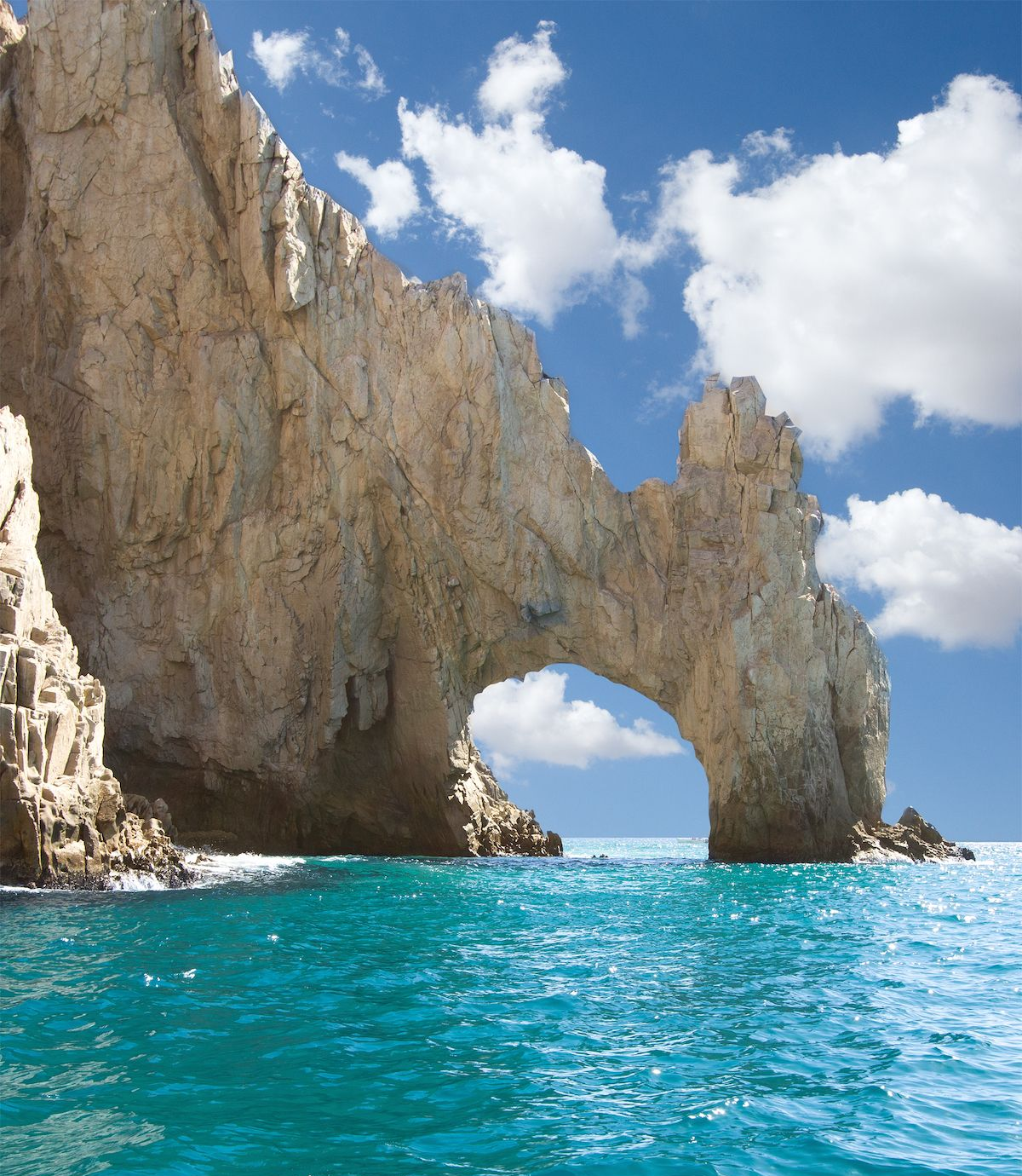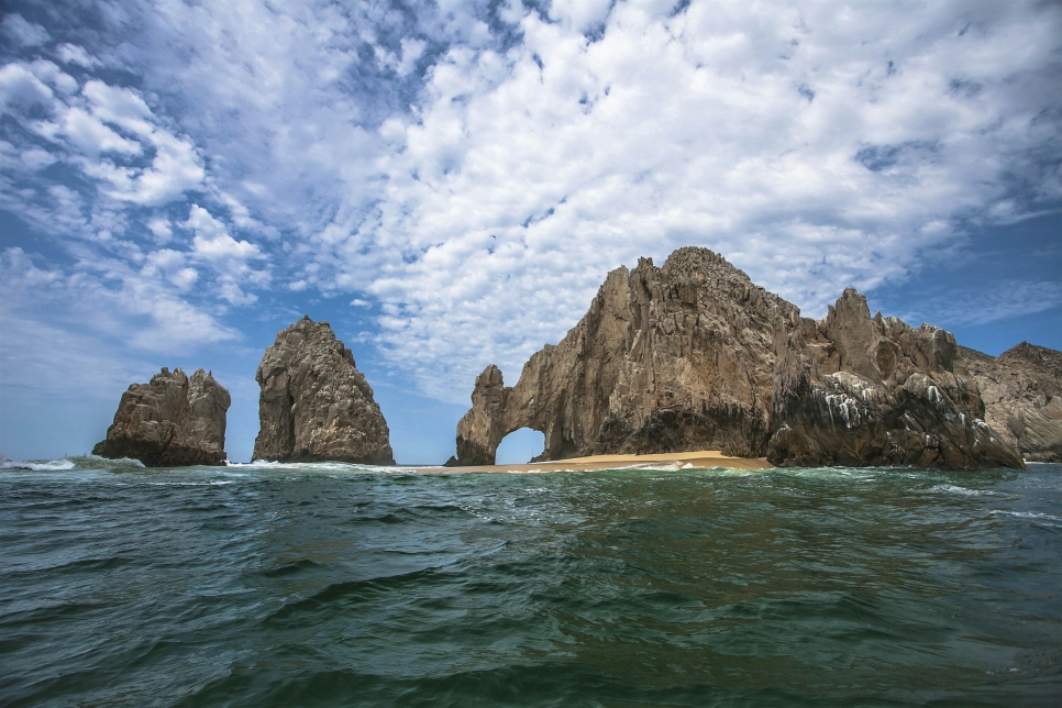 The arch of Cabo San Lucas is a distinctive granitic rock formation at the southern tip of Cabo San Lucas, which is itself the extreme southern end of Mexico‘s Baja California Peninsula.[1] The arch is locally known as “El Arco,” which means “the arch” in Spanish, or “Land’s End.”[2] It is here that the Pacific Ocean becomes the Gulf of California.
