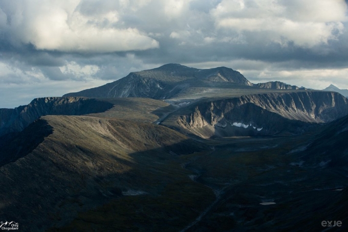 The mountain is formed with quartzites and metamorphosed slates of the Proterozoic Eon and Cambrian Period. There are some glaciers on the mountain. Also, there are sparse forests of larch and birch in the deep valleys at the foot of the mountain. The slopes of the mountain are covered with highland tundra.