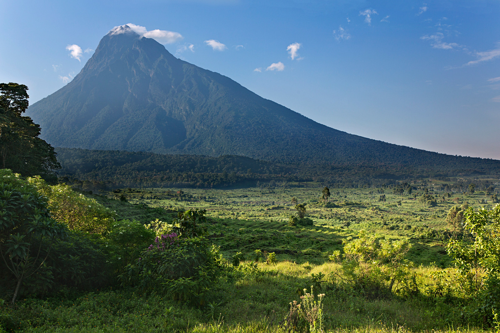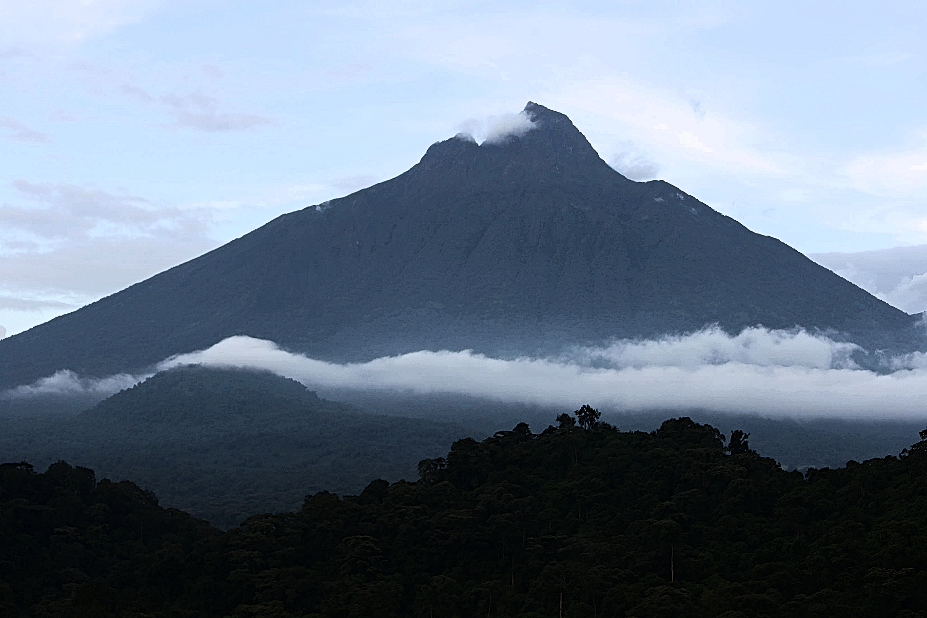 Mount Mikeno is an extinct volcanic mountain located in the Democratic Republic of the Congo section of the Virunga Mountains along with Mount Nyiragongo, Mount Nyamuragira, Mount Karisimbi, Mount Bisoke and Mount Sabyinyo. At 4,437 metres (14,557 ft) Mount Mikeno is the second highest peak in the Virunga Mountains after Karisimbi, and the 13th highest in Africa. Mikeno means “poor” and is so named for its harsh slopes which preclude human habitation. [4]
