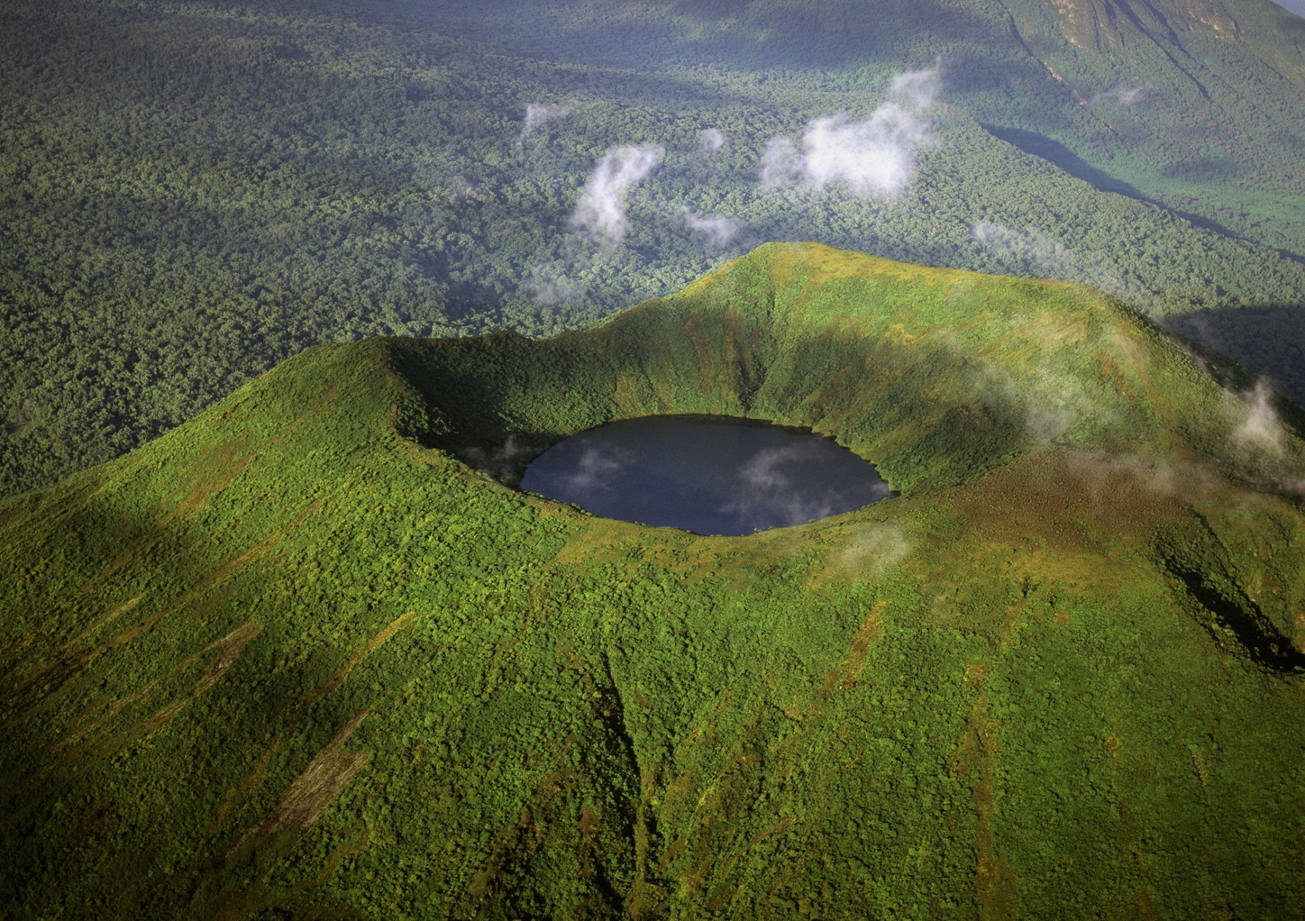 Bisoke, like all the peaks in the Virunga Mountain Range, is a volcano created by rift action on the forming divergent boundary of the East African Rift which is slowly bisecting the African Plate. Bisoke has two recorded eruptions which happened in 1891 and 1957. The most recent eruption happened 11 km north of the summit, and it formed two small cones on the volcano’s north flank. There is evidence that the area where this eruption occurred is still geologically active, suggesting the likelihood of future activity at Bisoke. The volcano has two crater lakes, one being the largest of the range.[1]